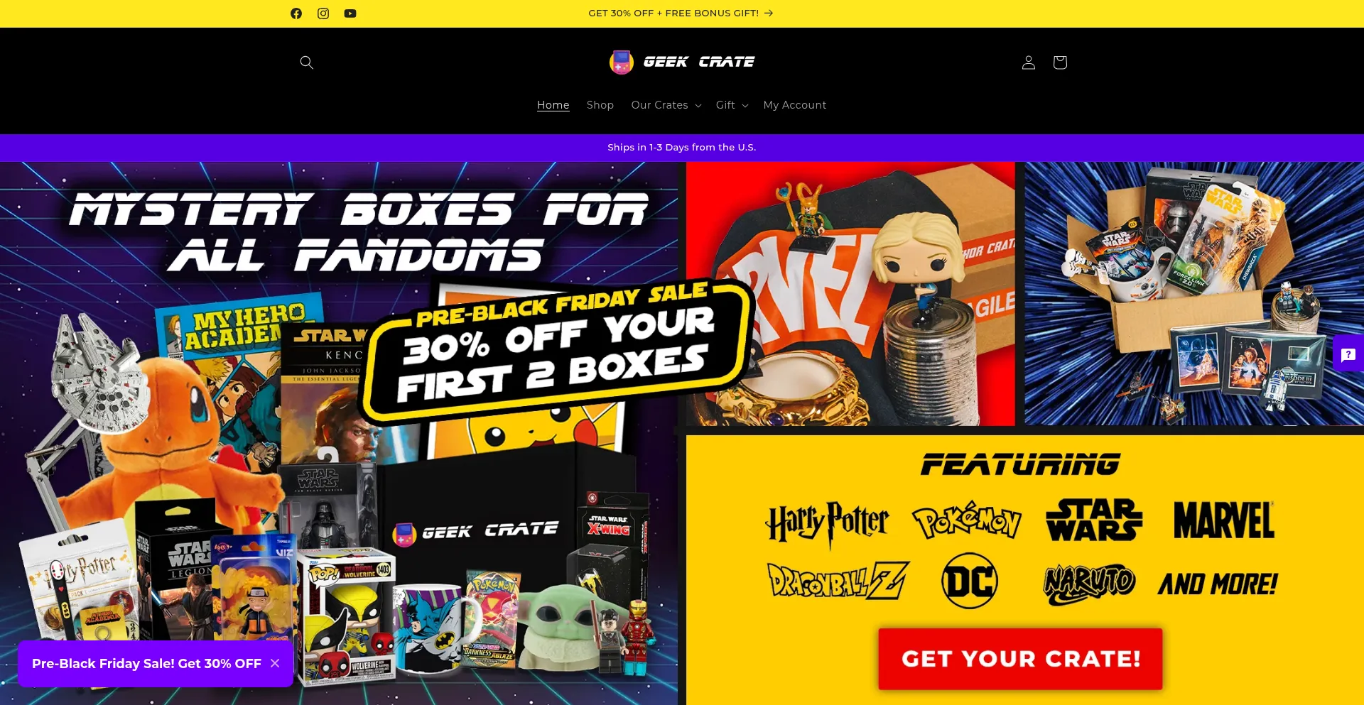 Geek Crate is the #1 geek & gamer mystery box, bringing the worlds of Star Wars, Marvel, Pokemon, Harry Potter, Anime and more to fans worldwide.