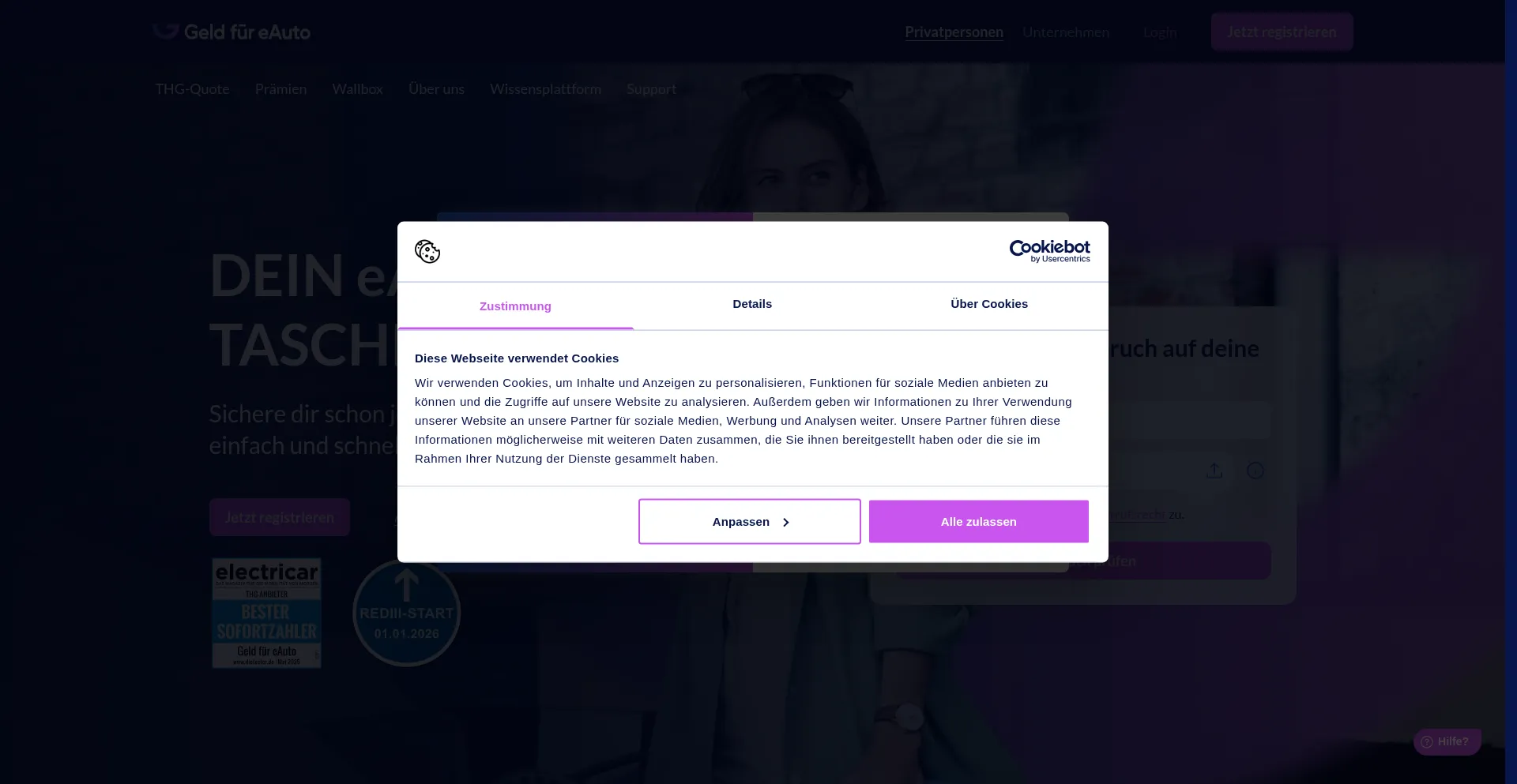 Die Website implementiert Cookie-Zustimmungsmechanismen in Compliance mit Datenschutzregulierungen wie DSGVO oder CCPA. Dies demonstriert, dass geld-fuer-eauto.de Datenschutzstandards einhält und Benutzern Kontrolle über persönliche Datenerfassungspraktiken bietet.