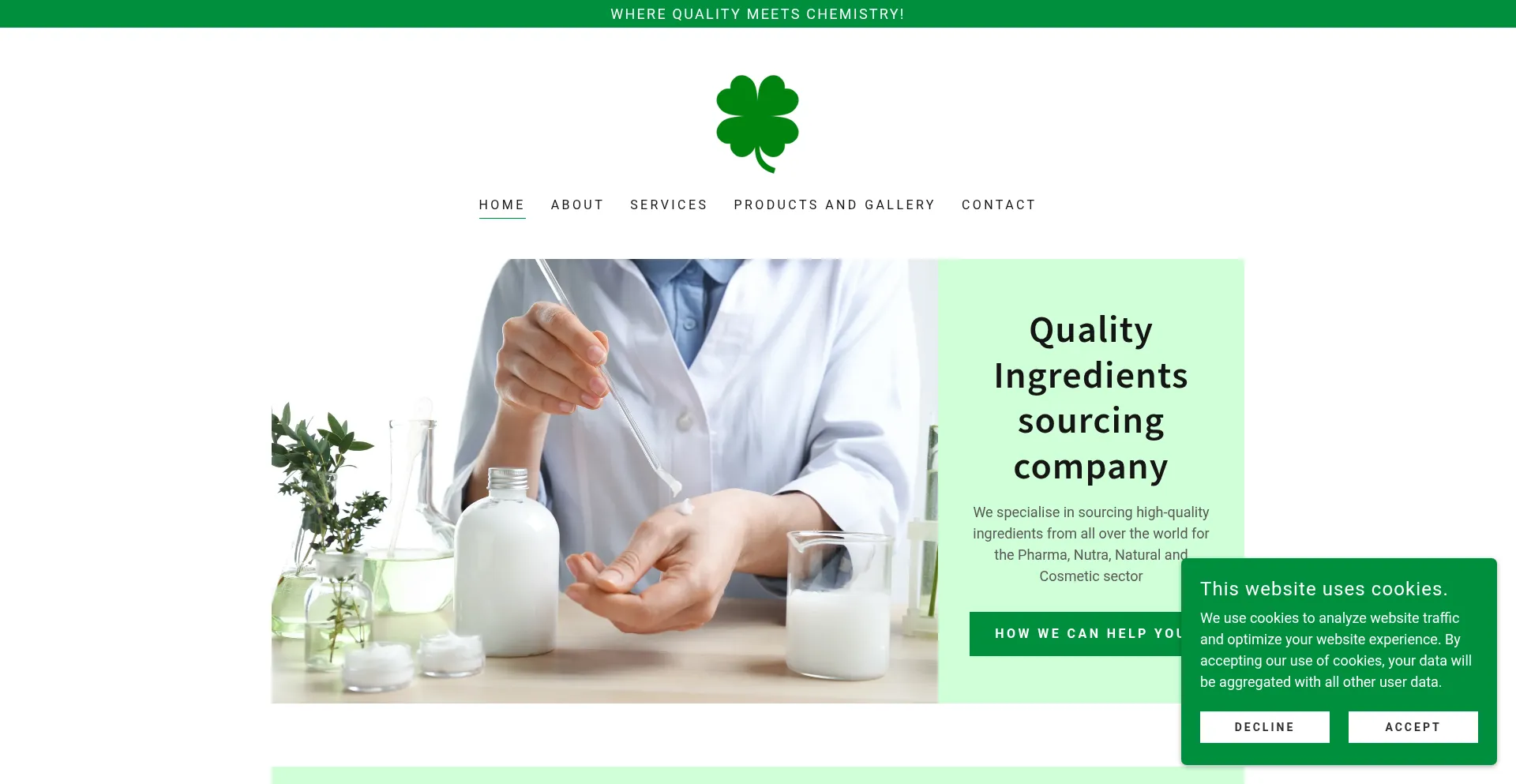 Discover our trusted sourcing services for the pharma and cosmetic industries. We bring you the finest ingredients from around the world. Contact us today!