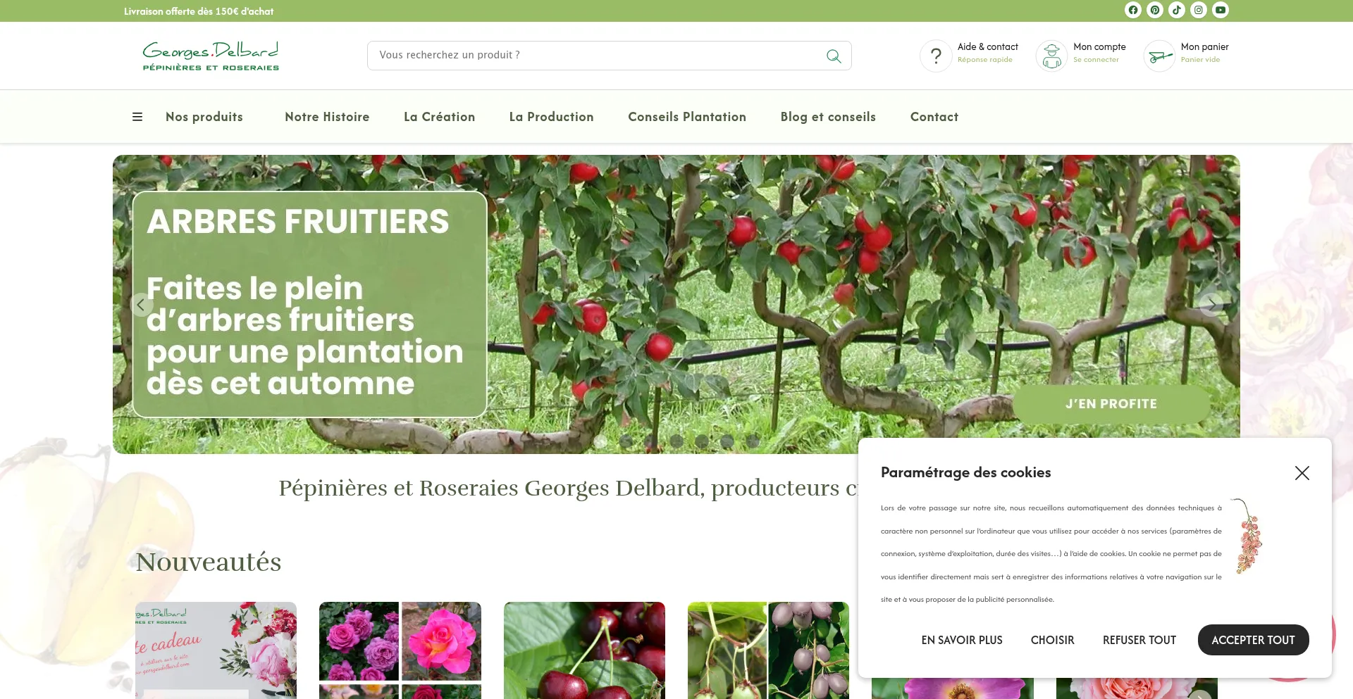 Pépinières et roseraies Georges Delbard. Jardinerie en ligne et achat de plantes, rosiers et arbres fruitiers. Vente en direct de nos pépinières françaises.