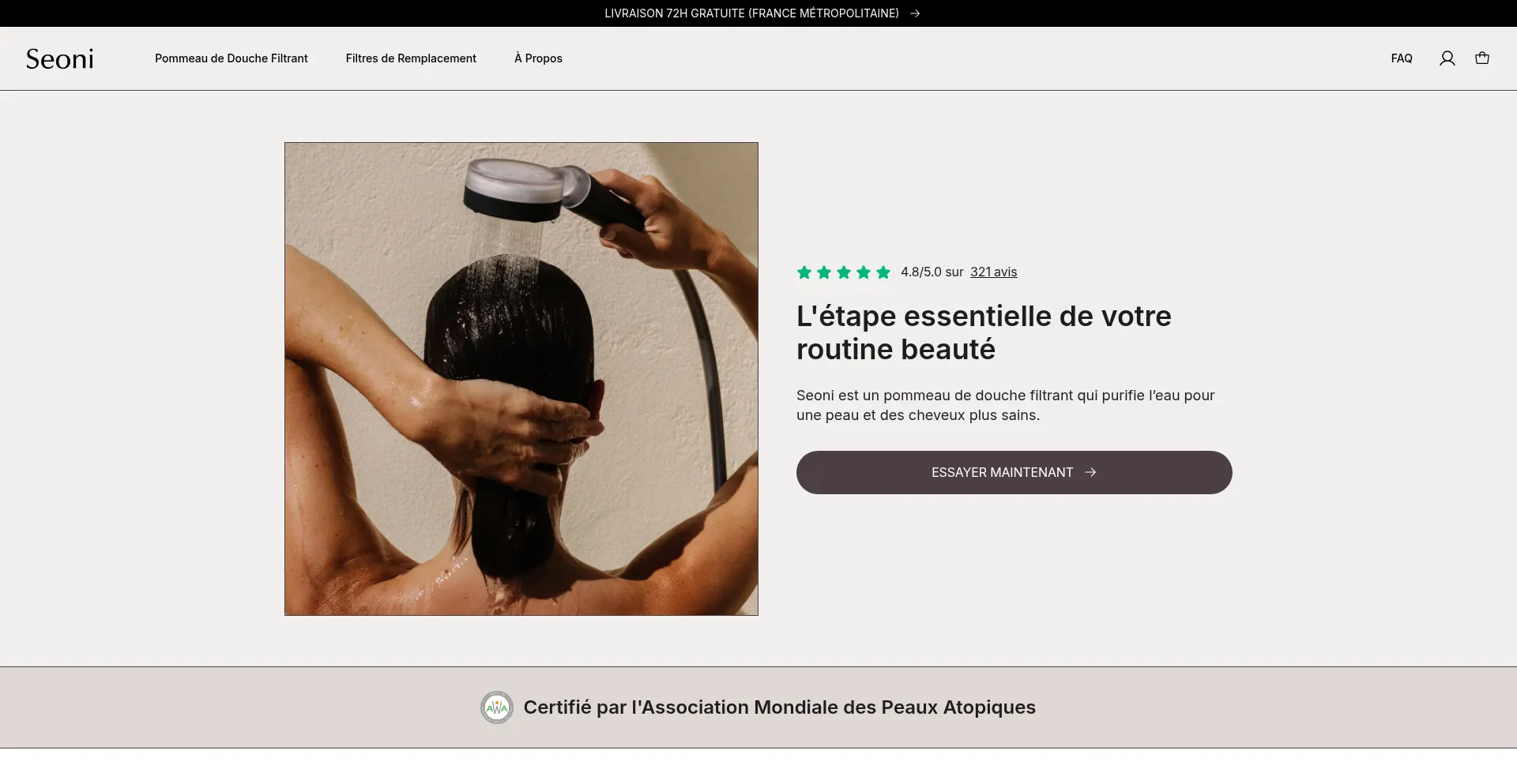 Découvrez Seoni, le pommeau de douche filtrant qui élimine le chlore et les métaux lourds pour une peau plus douce et des cheveux plus sains. Profitez d'une eau purifiée pou...