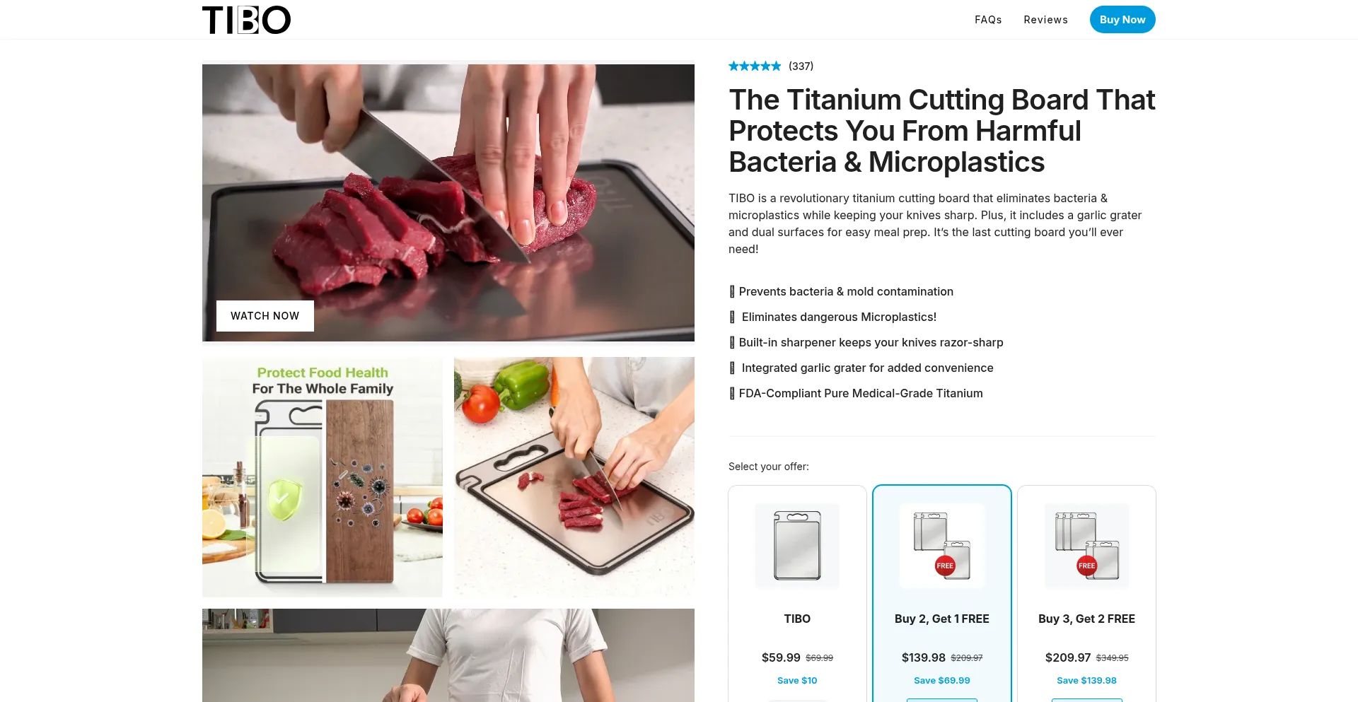 TIBO is a revolutionary titanium cutting board that eliminates bacteria & microplastics while keeping your knives sharp. Plus, it includes a garlic grater