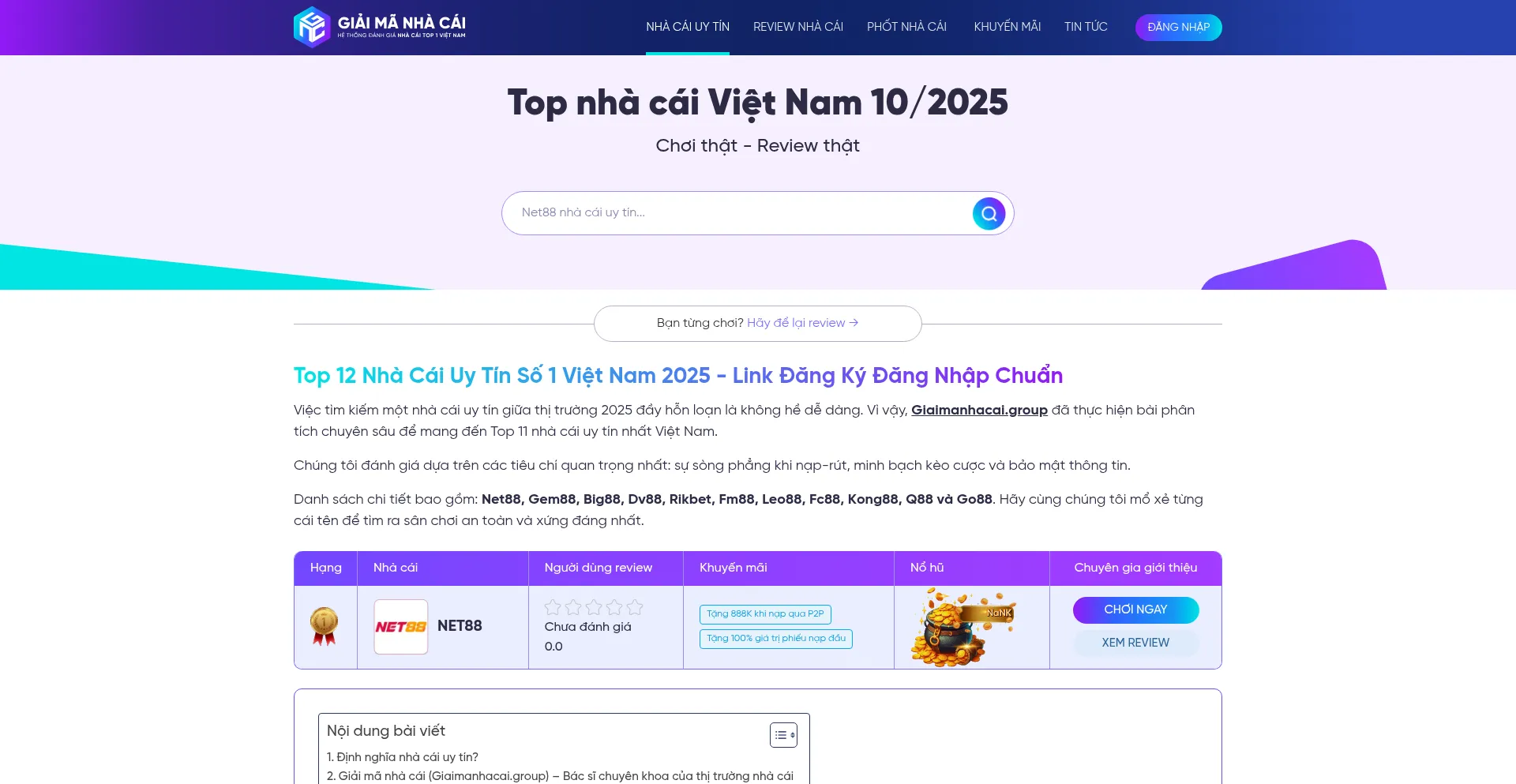 Top 12 Nhà Cái Uy Tín Số 1 Việt Nam 2025 - Link Đăng Ký Đăng Nhập Chuẩn