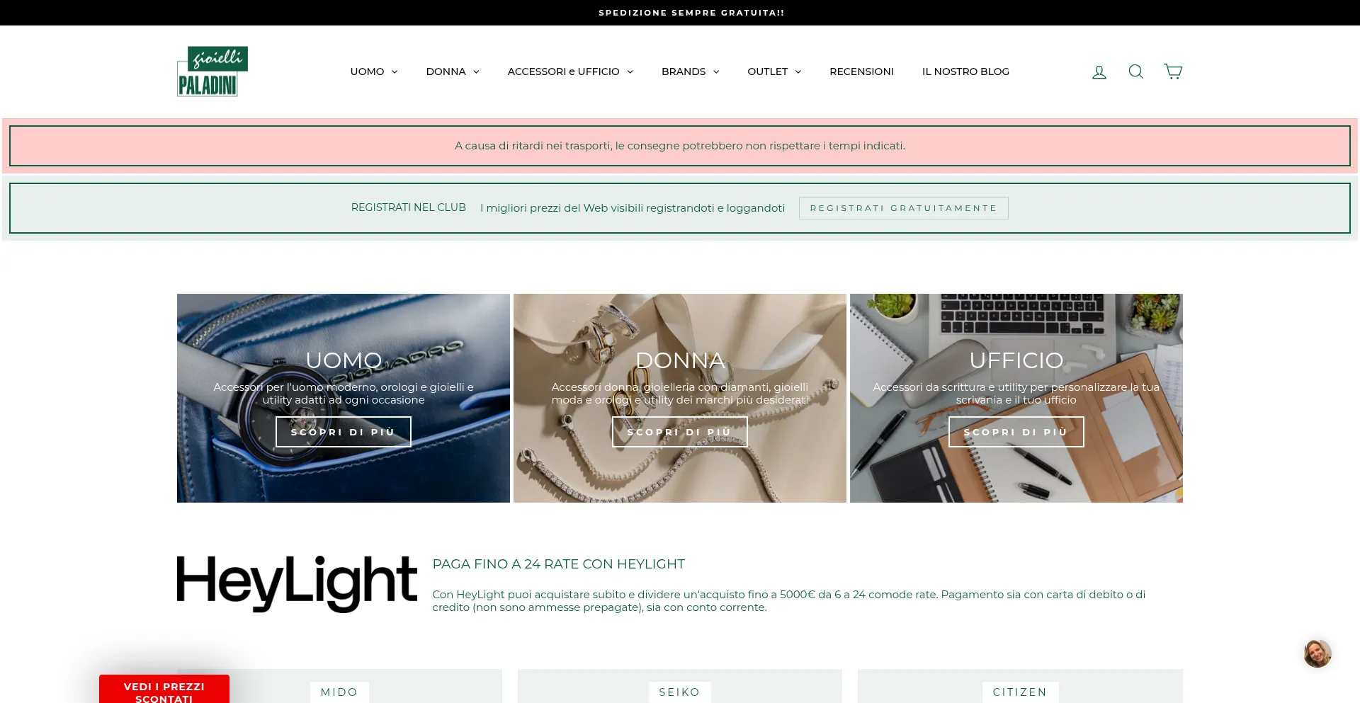 Acquisto sicuro da Gioielli Paladini orologi delle marche Mido, Seiko, Citizen, G-Shock e gioielli: Comete, Mirco Visconti, Unoaerre Prezzi e sconti online