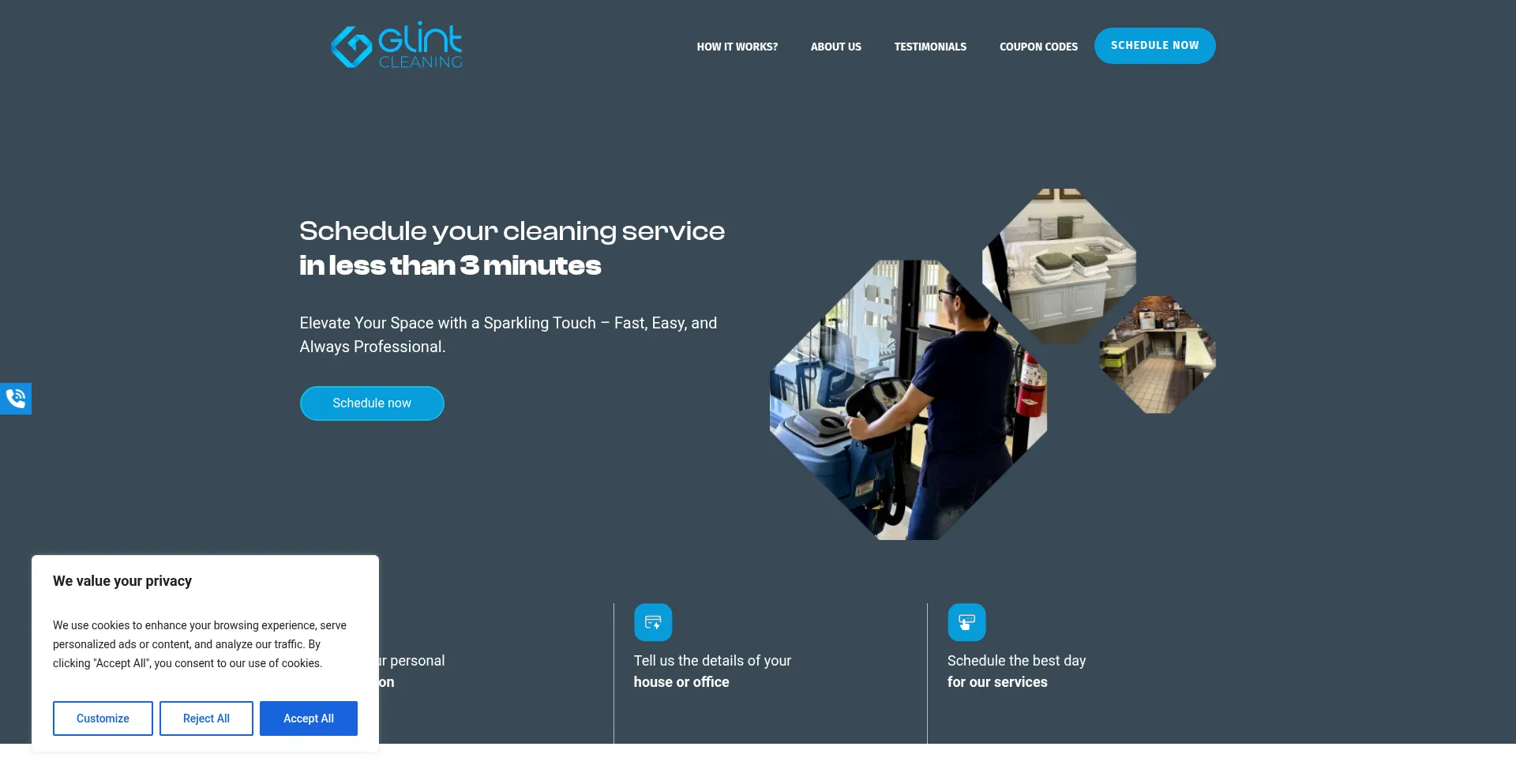 Die Website implementiert Cookie-Zustimmungsmechanismen in Compliance mit Datenschutzregulierungen wie DSGVO oder CCPA. Dies demonstriert, dass glint.cleaning Datenschutzstandards einhält und Benutzern Kontrolle über persönliche Datenerfassungspraktiken bietet.