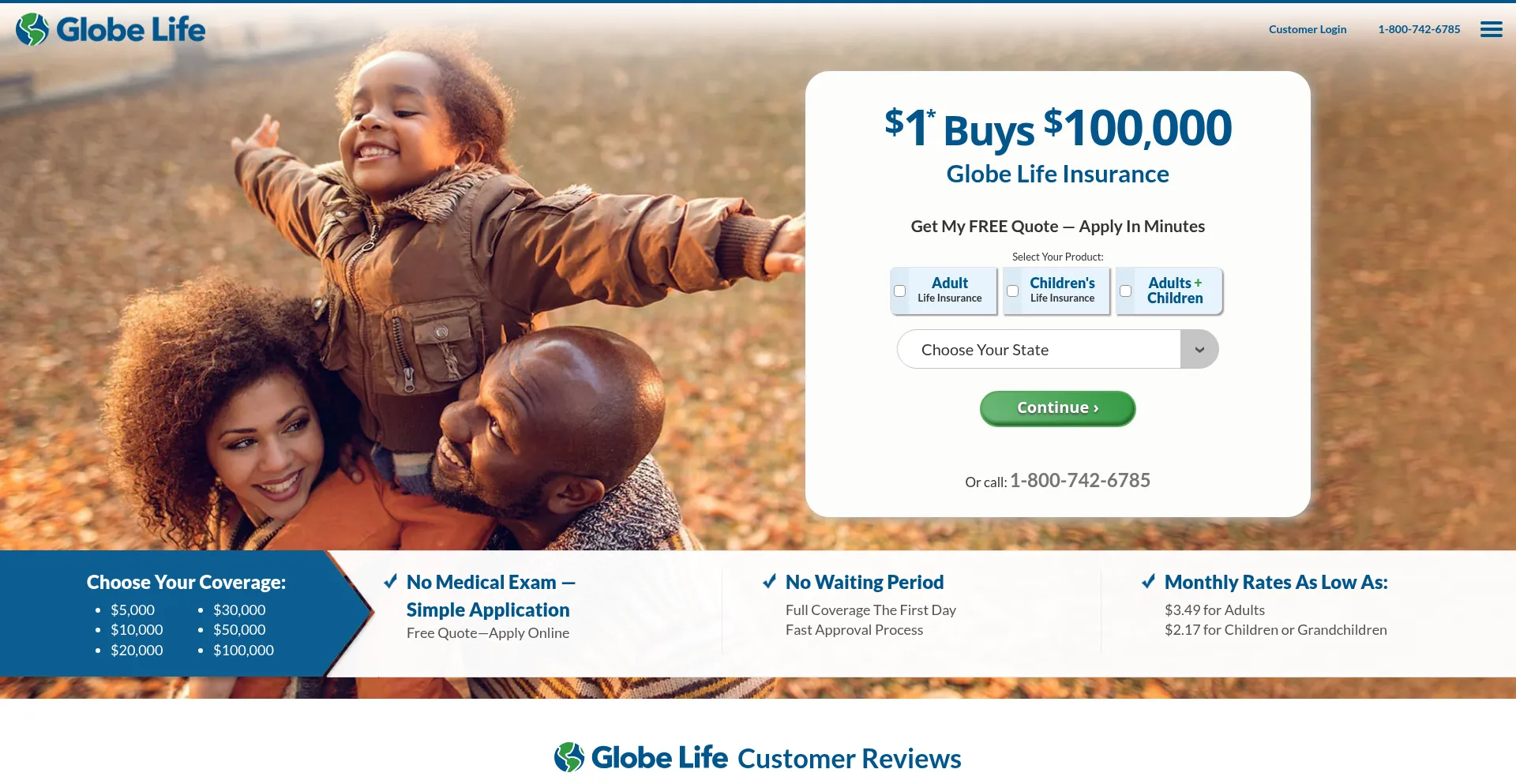 Globe Life - Buy Direct. $1* buys up to $100,000 life insurance at Globe Life And Accident Insurance Company. No Medical Exam - Simple Application. No Waiting Period.