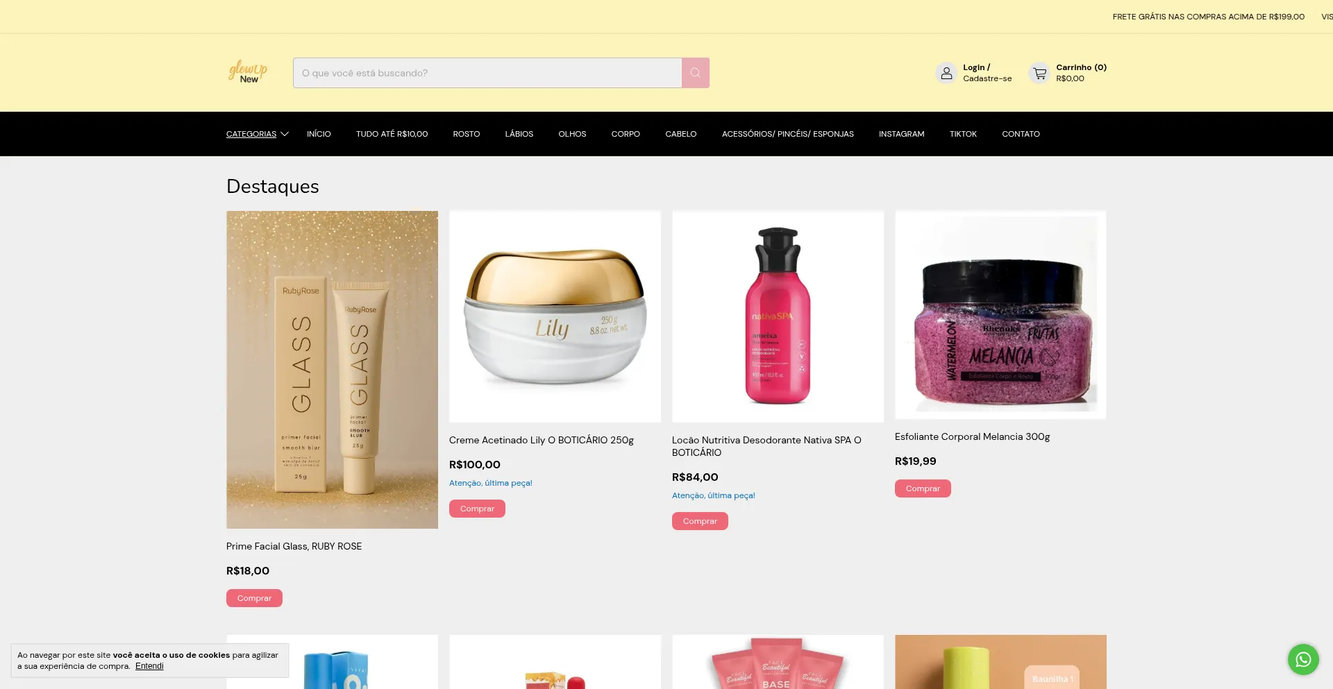 Compre produtos de GlowUp New por internet. Temos tudo até r$10,00, rosto e mais. Faça seu pedido e pague-o online.