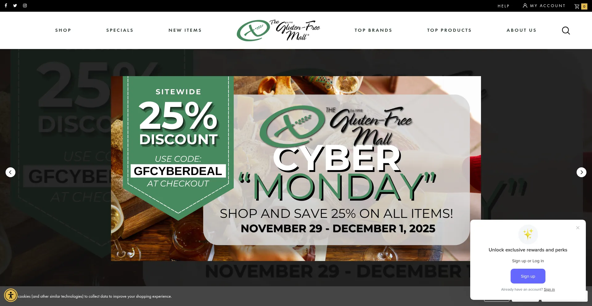 Die Website implementiert Cookie-Zustimmungsmechanismen in Compliance mit Datenschutzregulierungen wie DSGVO oder CCPA. Dies demonstriert, dass glutenfreemall.com Datenschutzstandards einhält und Benutzern Kontrolle über persönliche Datenerfassungspraktiken bietet.