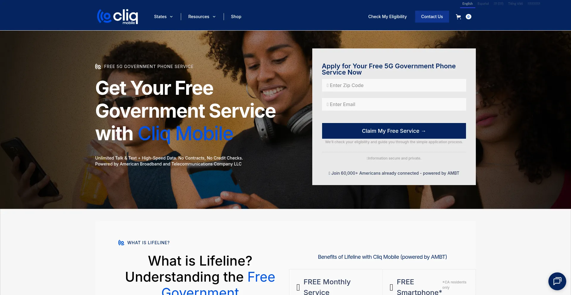 Get free talk, text, and data with Cliq Mobile's Lifeline plan. Qualify based on income or government assistance. Check coverage and apply now!