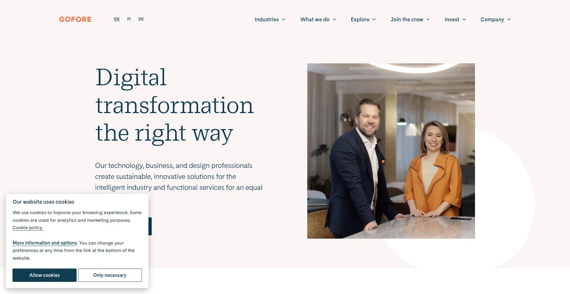 brand.gofore.com gofore.com analytics.dude.fi gmpg.org www.linkedin.com bot.leadoo.com twitter.com fi-fi.facebook.com www.instagram.com open.spotify.com
