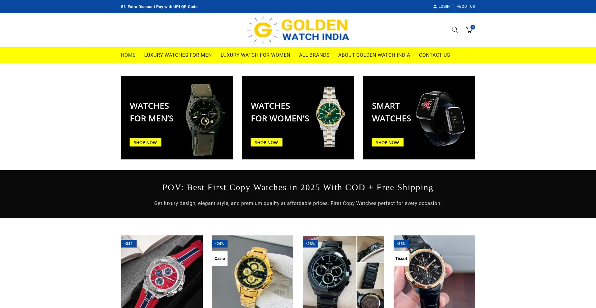 Get high end brands first copy watches luxury design, elegant style, and premium quality 1st copy watch at affordable prices By Golden Watch India