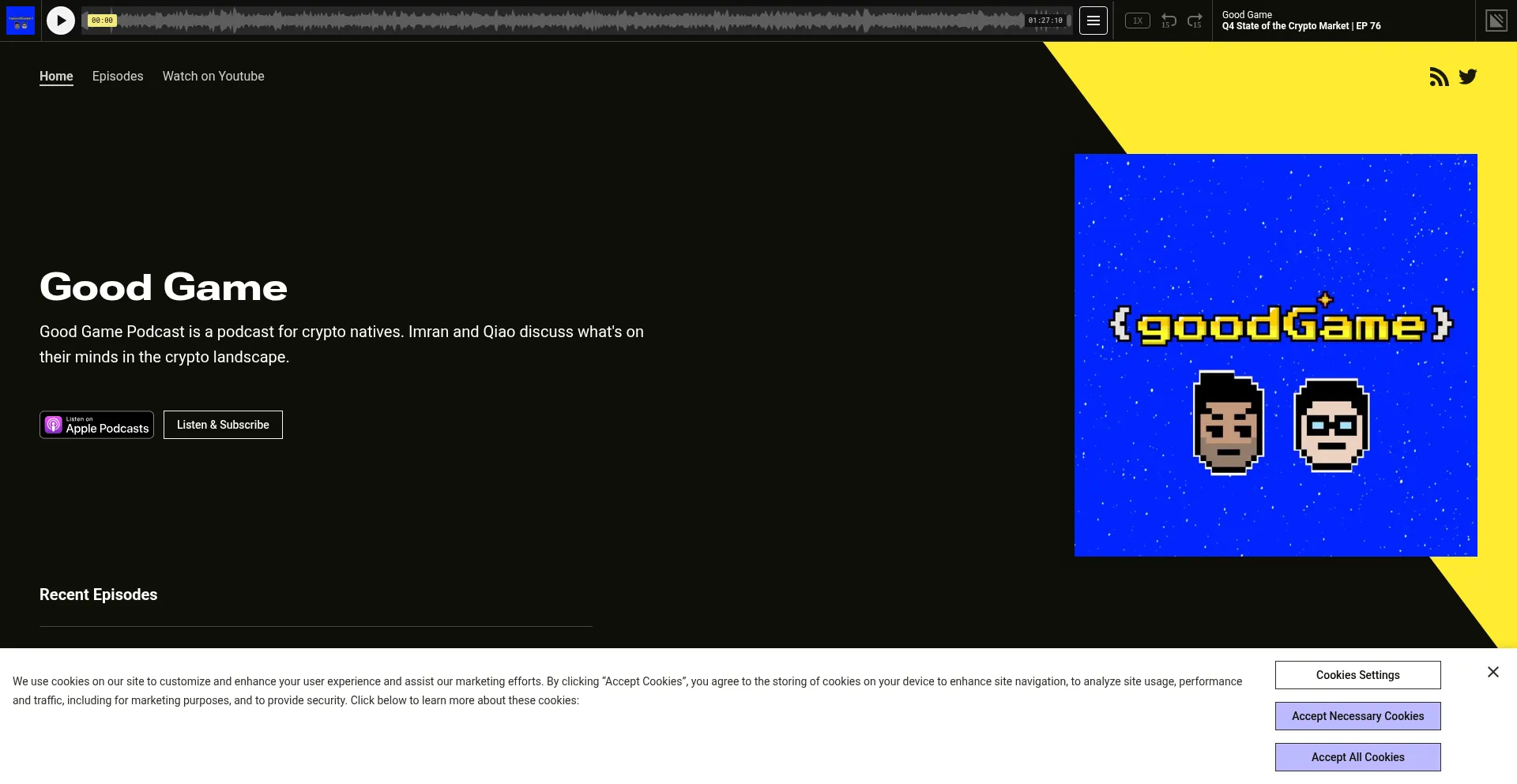 Good Game Podcast is a podcast for crypto natives. Imran and Qiao discuss what's on their minds in the crypto landscape.