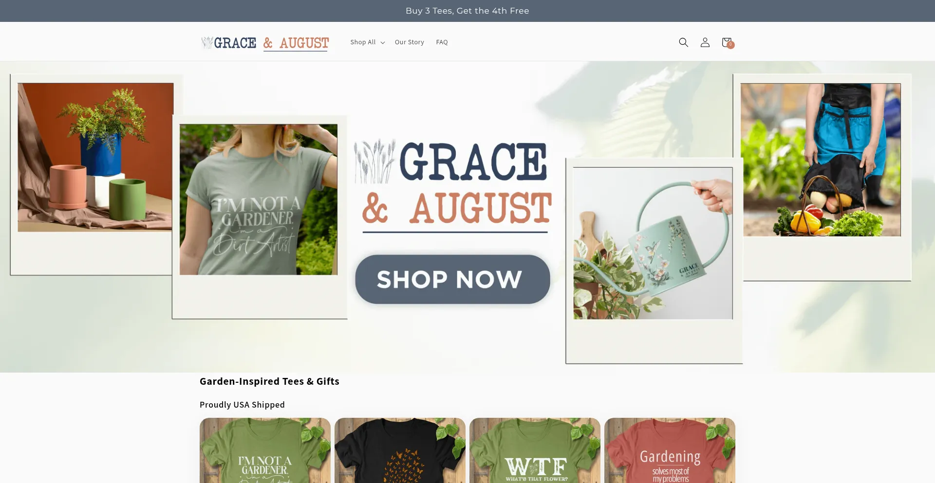 Explore a curated home and garden products at Grace and August. Find unique gifts for gardening enthusiasts, from exquisite watering cans to stylish aprons. Explore fun t-shirts...