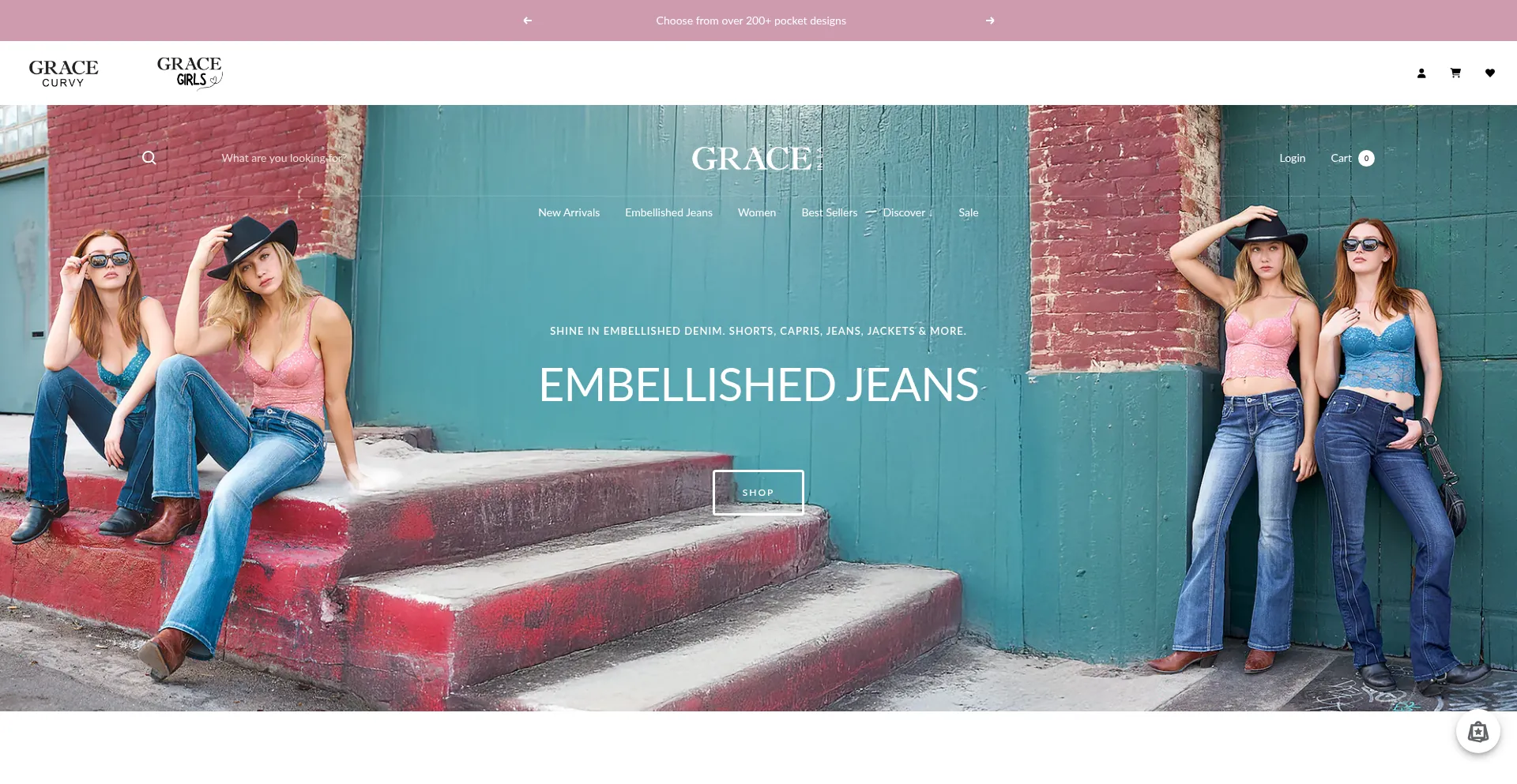 Grace in LA specializes in Women's Denim Jeans with Embellished & Embroidered designs. Shop stylish flare jeans, mid-rise denim shorts, capri jeans, and embroidered denim jacket...