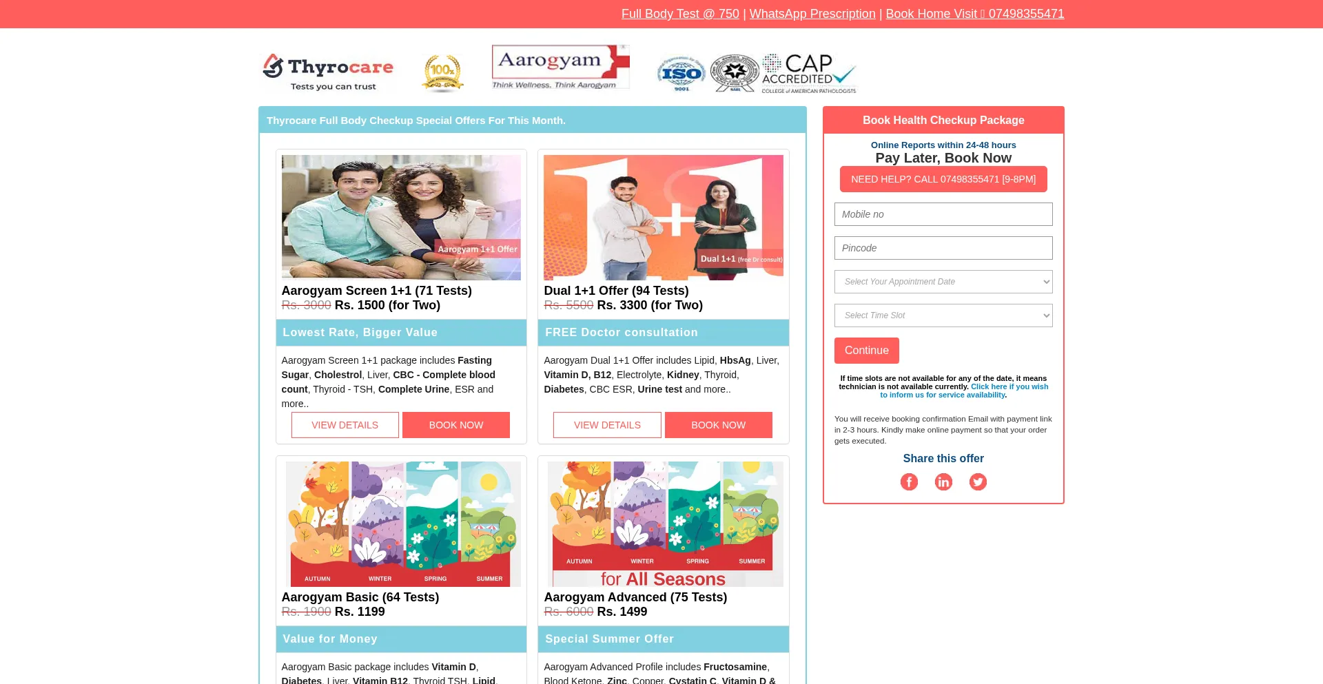 Know Thyrocare Special offers for this month at healthcareontime.com website and book packages at best price.