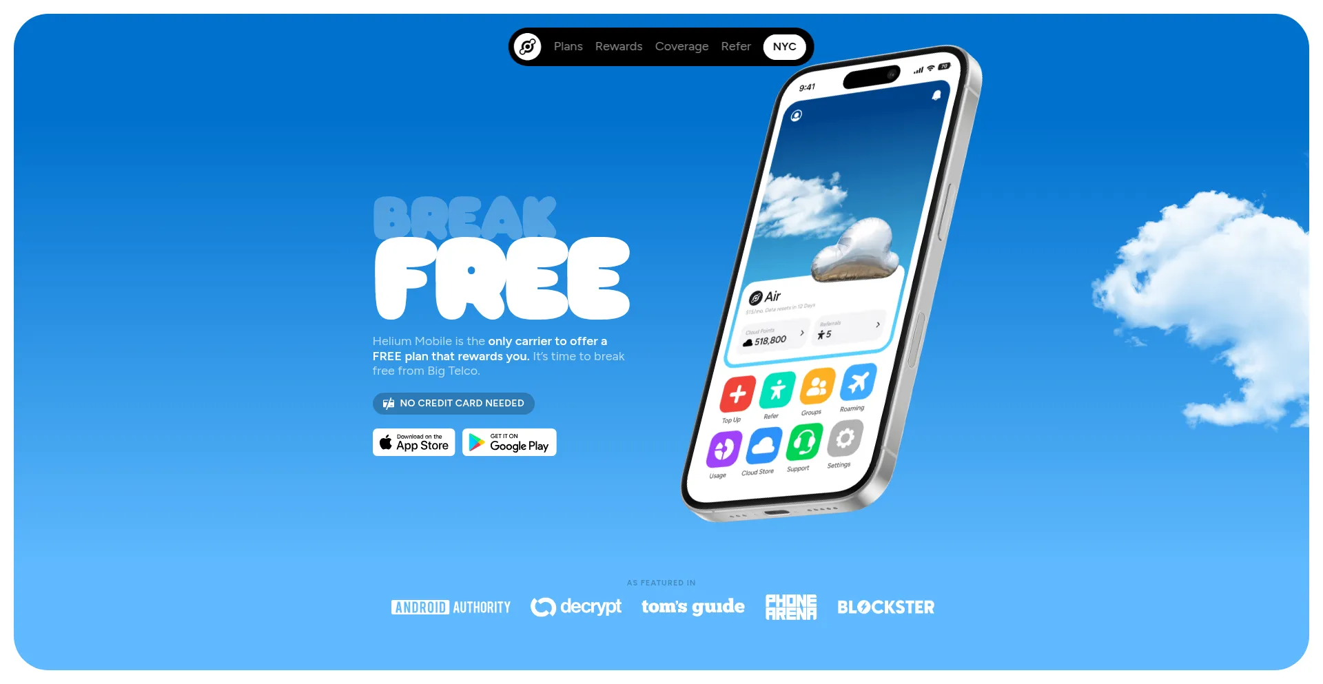 Helium Mobile is the only carrier to offer a FREE plan that rewards you. It’s time to break free from Big Telco.