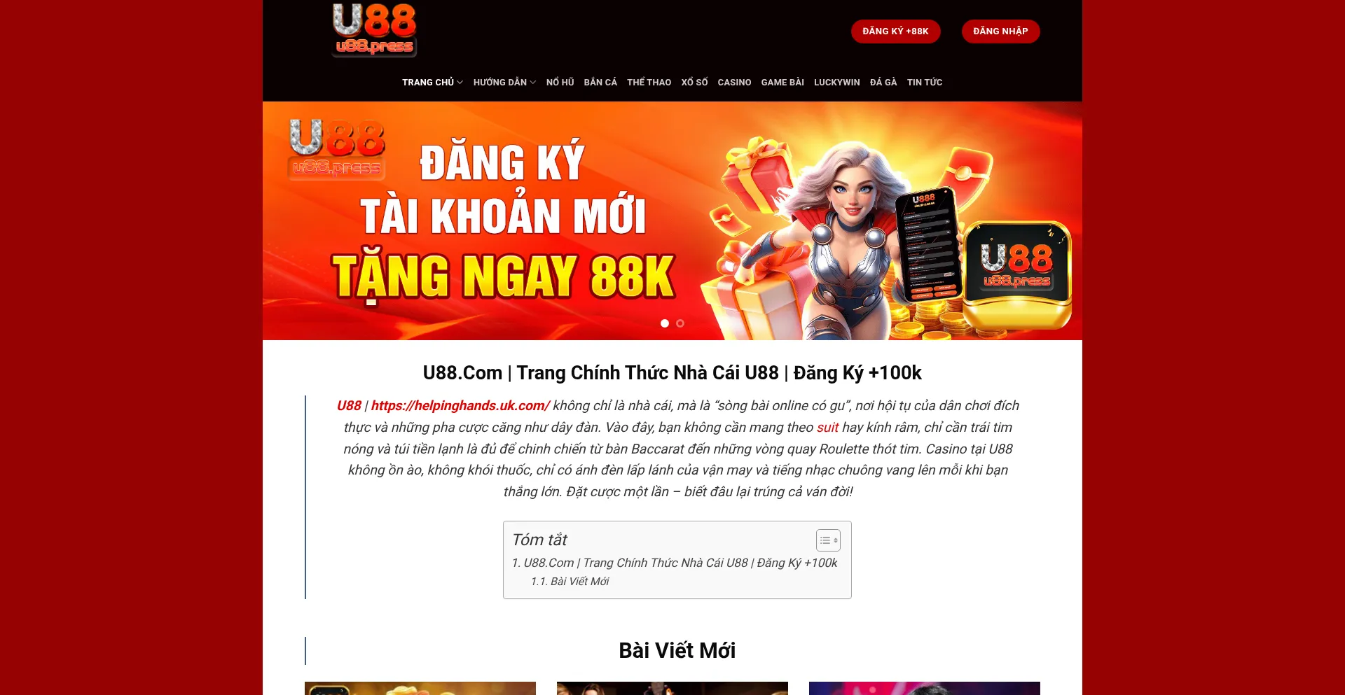 U88 ⭐ Nhà Cái Uy Tín U888 Helpinghands | Đăng Ký +100K