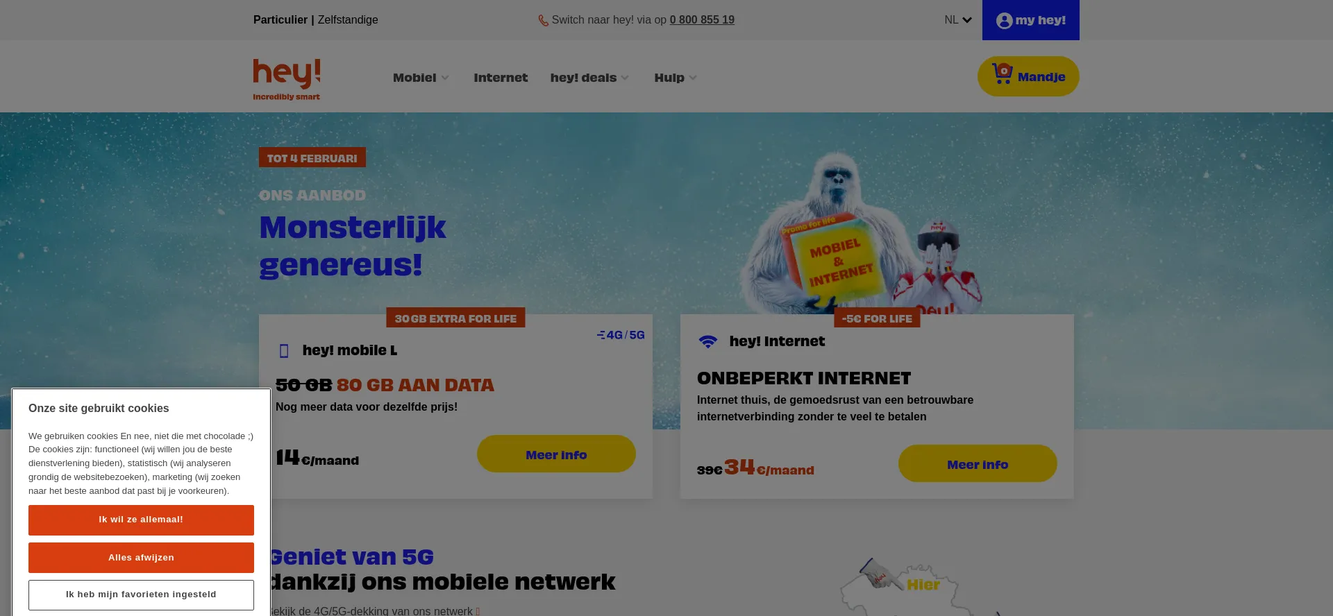 hey! altijd opzegbaar en tegen miniprijsjes: De goedkoopste mobiele abonnementen op de markt. Onbeperkt internetabonnement, supersnel en tegen miniprijsje.