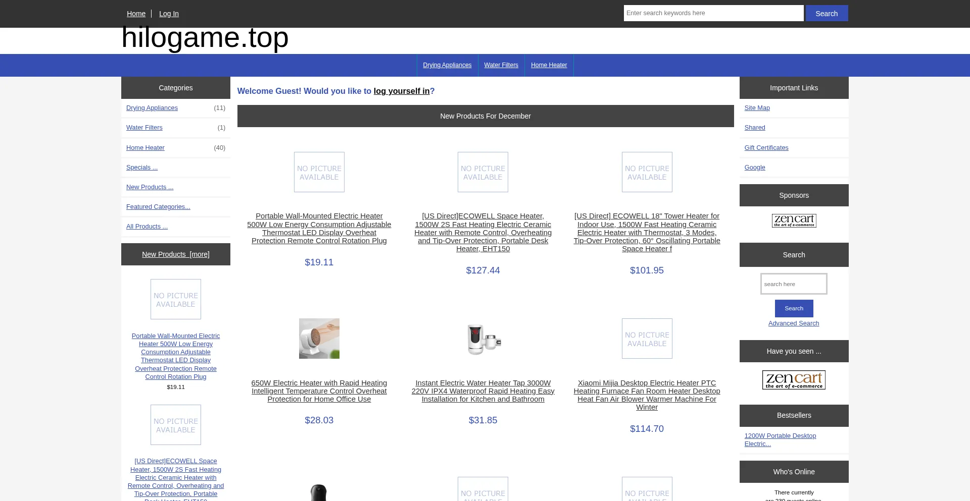hilogame.top www.google.com static.cloudflareinsights.com cdnjs.cloudflare.com www.zen-cart.com code.jquery.com