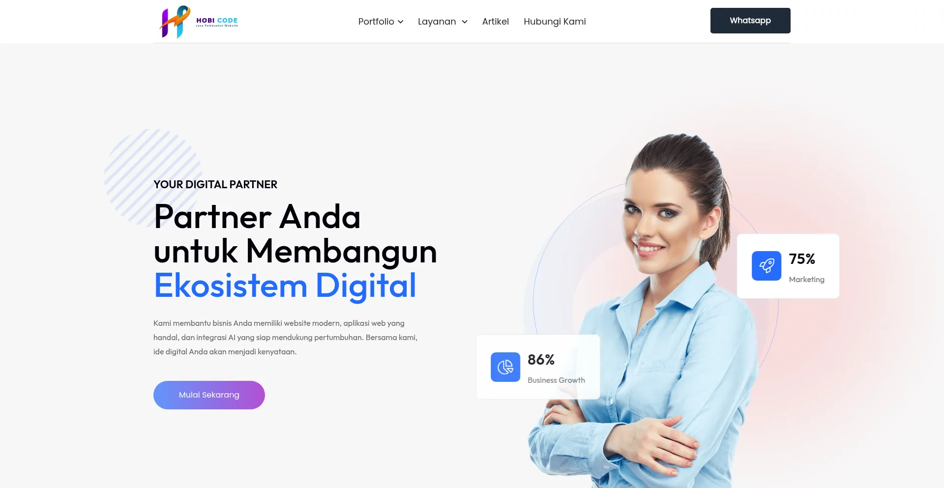 Hobicode siap menjadi partner transformasi digital Anda dengan layanan pembuatan website profesional, modern, responsif, dan sesuai kebutuhan bisnis Anda.