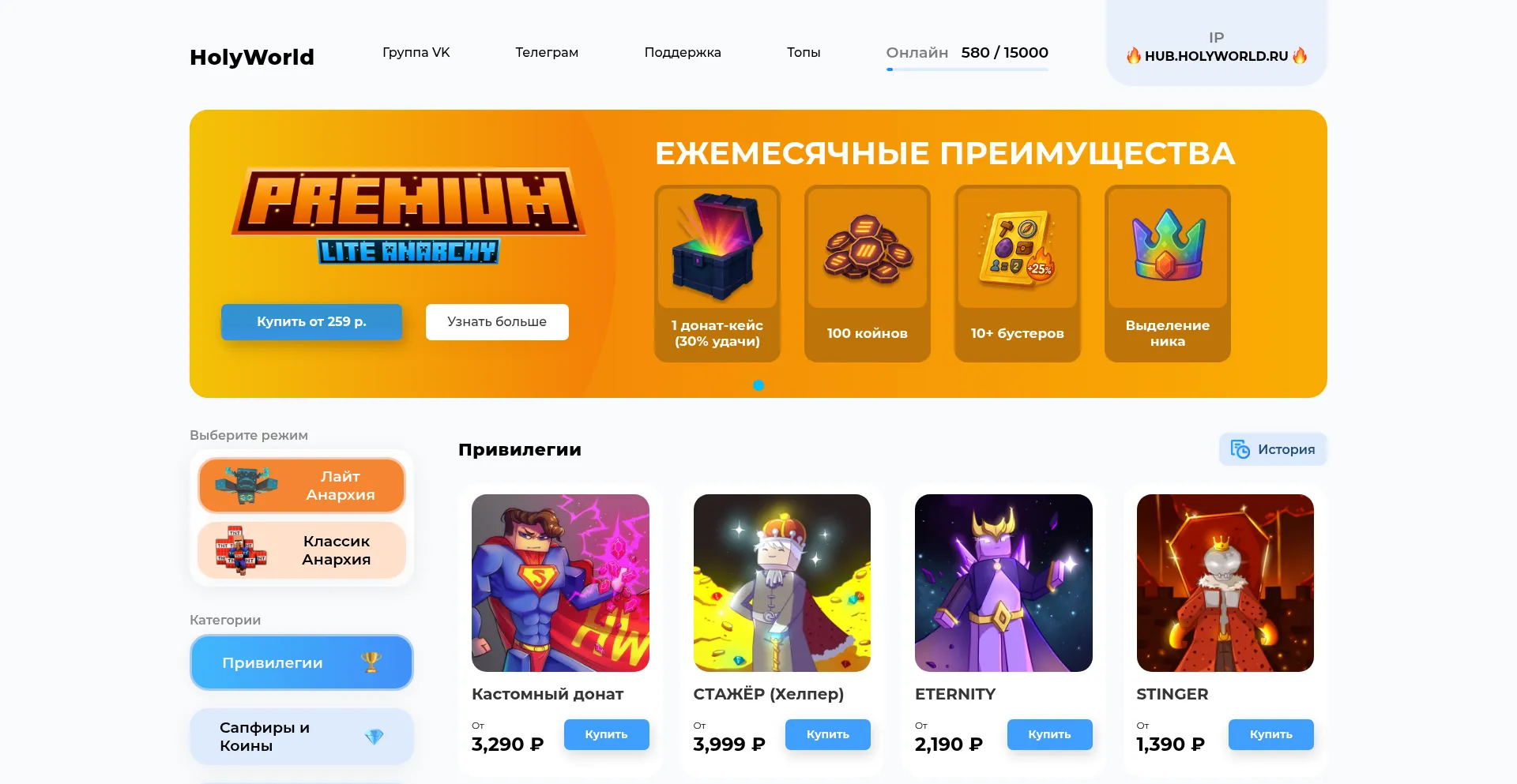 HolyWorld - сервер с анархией в игре Minecraft, на версии 1.16.5 и 1.20+. Более 1 000 000 игроков уже играют у нас, при�...