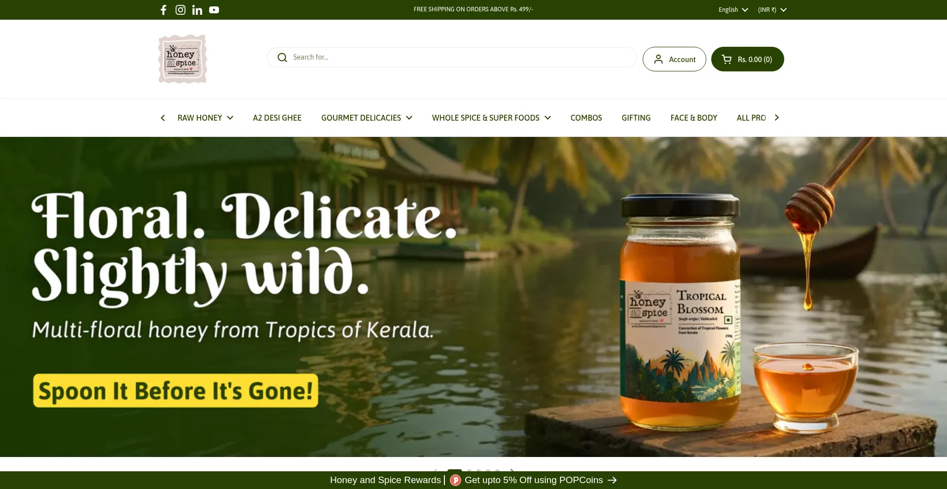 Buy from Honey and Spice store, Premium Raw Honeys, Mono-floral Honeys, All-natural spices, A2 Desi Cow Ghee, Apple Cider vinegar, Honey Rose Gulkand, Premium freeze dried Coffe...