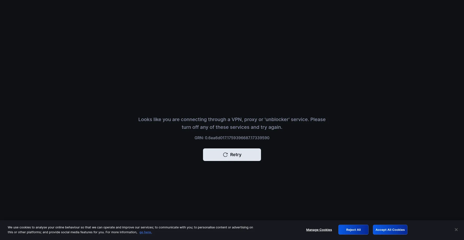 Looks like you are connecting through a VPN, proxy or 'unblocker' service.