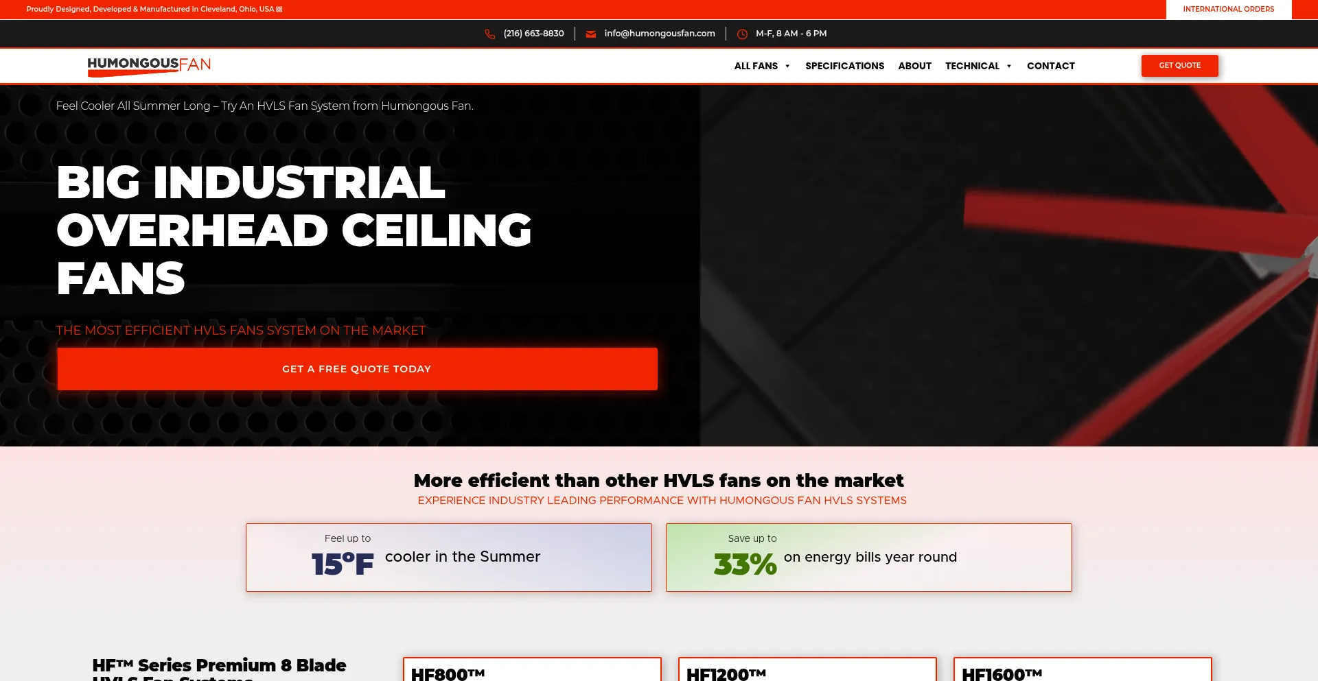 HVLS Fans, Big Industrial overhead ceiling HVLS fans with the best blades for industry leading performance (216) 663-8830 Big Fan Company