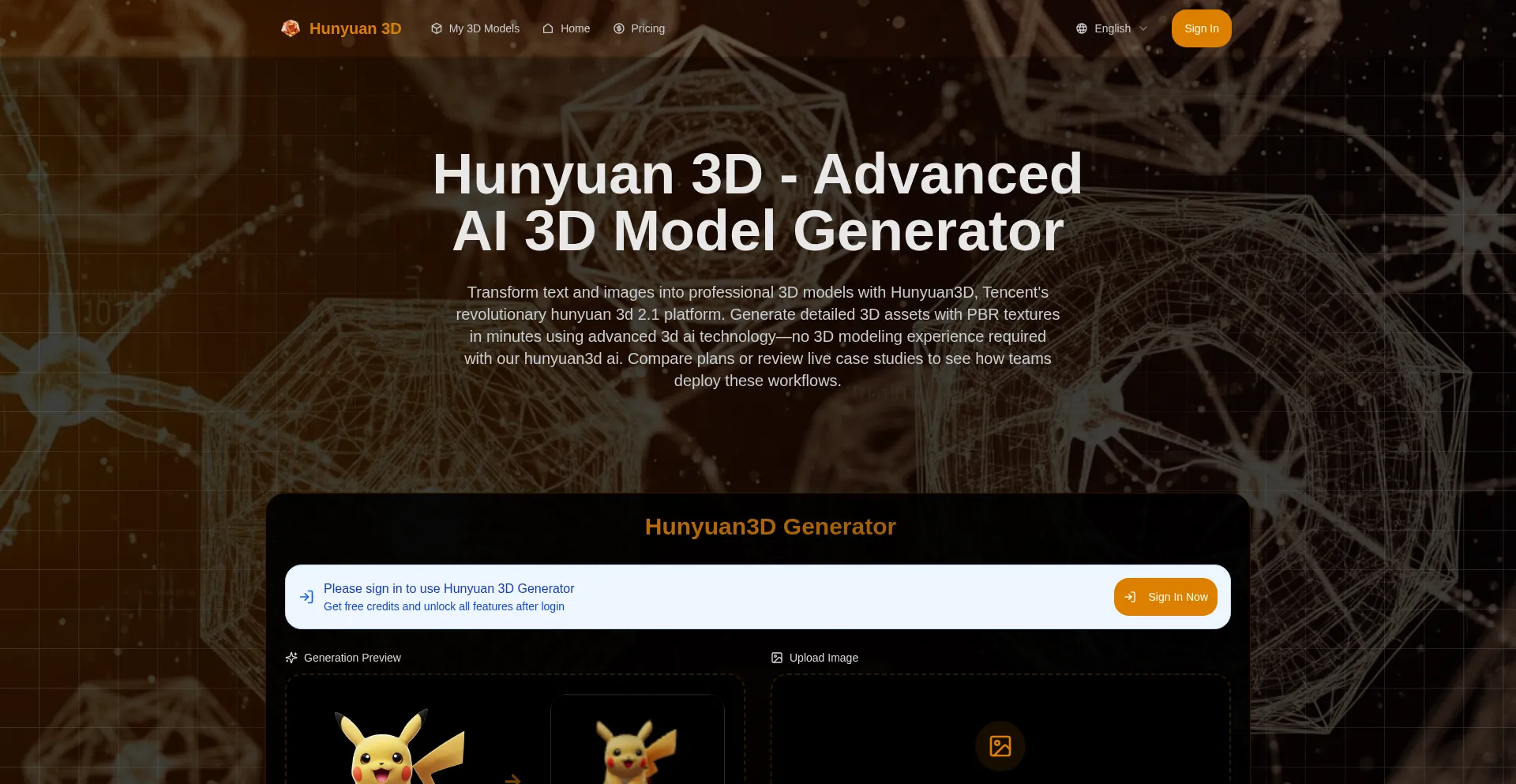 Transform images into high-quality 3D models with Hunyuan 3D AI. Professional generation supporting PBR textures, multiple formats and advanced features.
