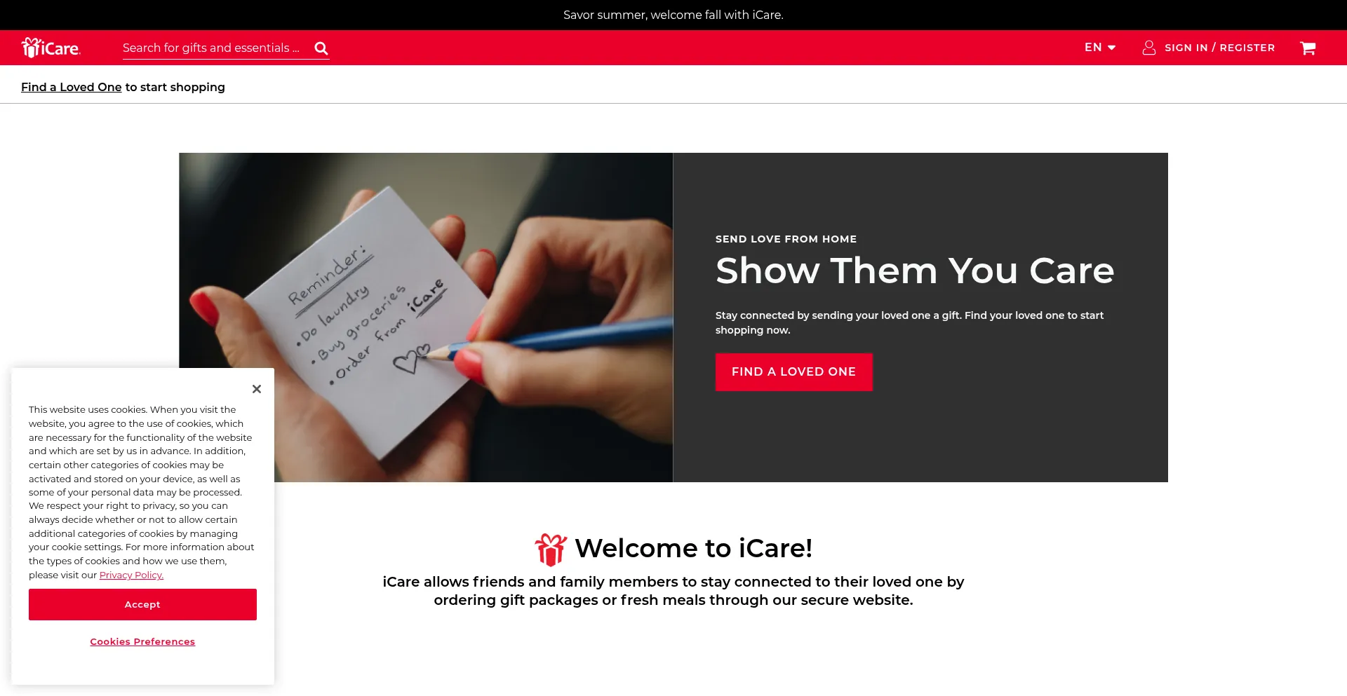 iCare allows you to send a care package to your incarcerated loved one. Choose from a menu of options to send love & stay connected.