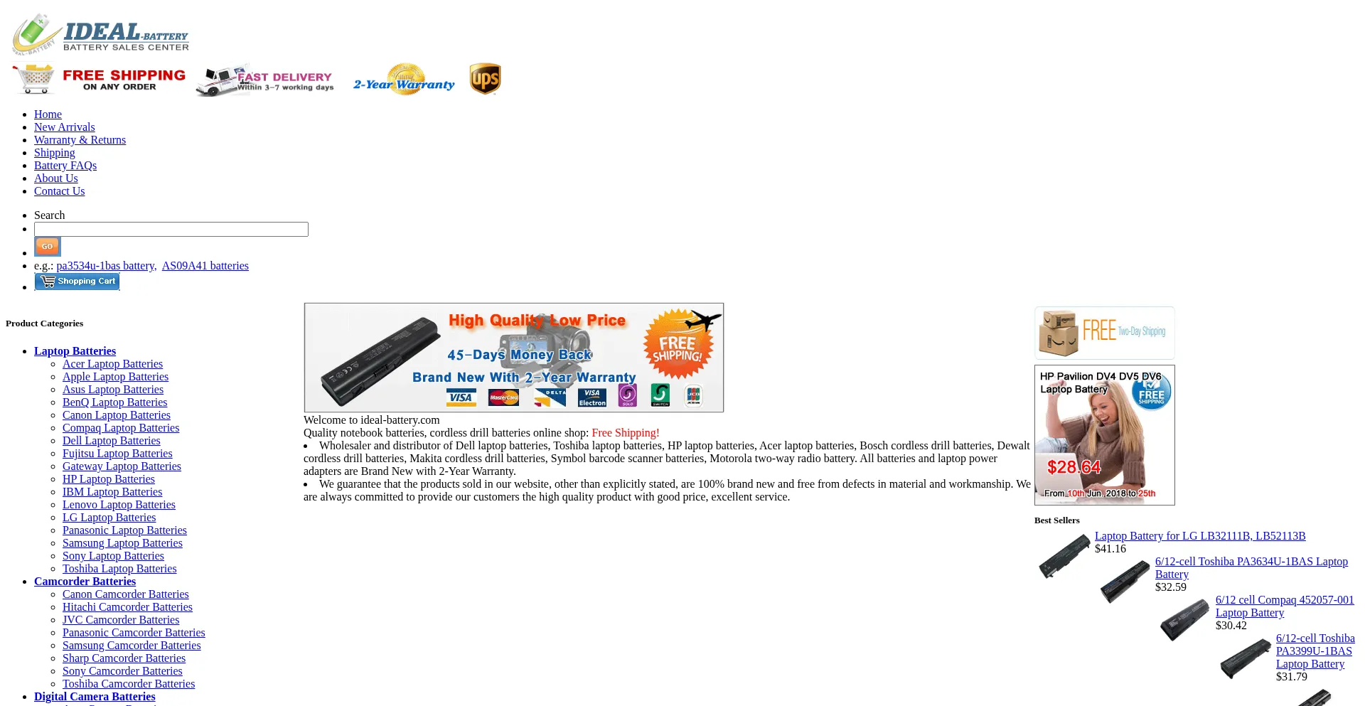Laptop Batteries, Battery Chargers & Laptop AC/DC Adapters, PDA, Power Tool, Digital Camera, Camcorder, DVD Battery