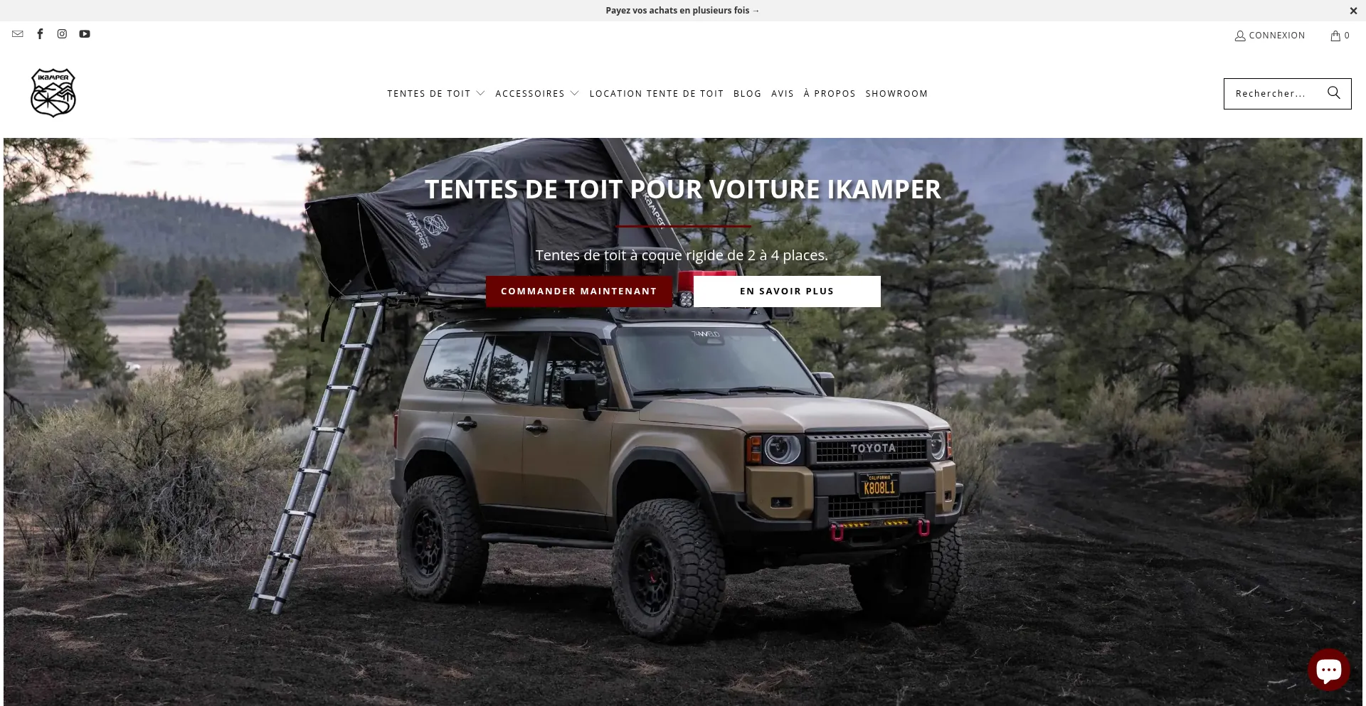Bienvenue chez iKamper France! Fans de voyages, de nature, et d'aventures? Nos tentes de toit Skycamp et X-Cover sont disponibles pour vos prochaines aventures!