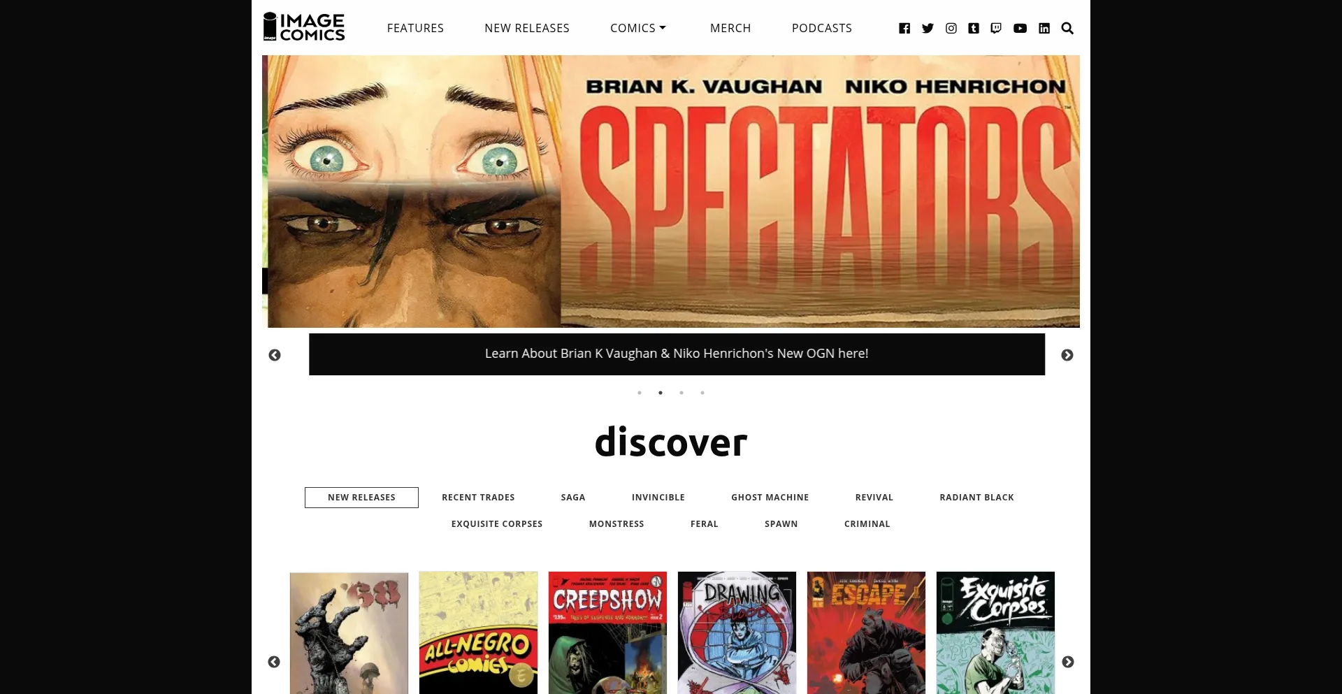 Die Anwesenheit von Social-Media-Links auf der Website deutet darauf hin, dass imagecomics.com offizielle Konten auf Social-Media-Plattformen beibehält, was ein positiver Indikator für Glaubwürdigkeit und Engagement ist.
