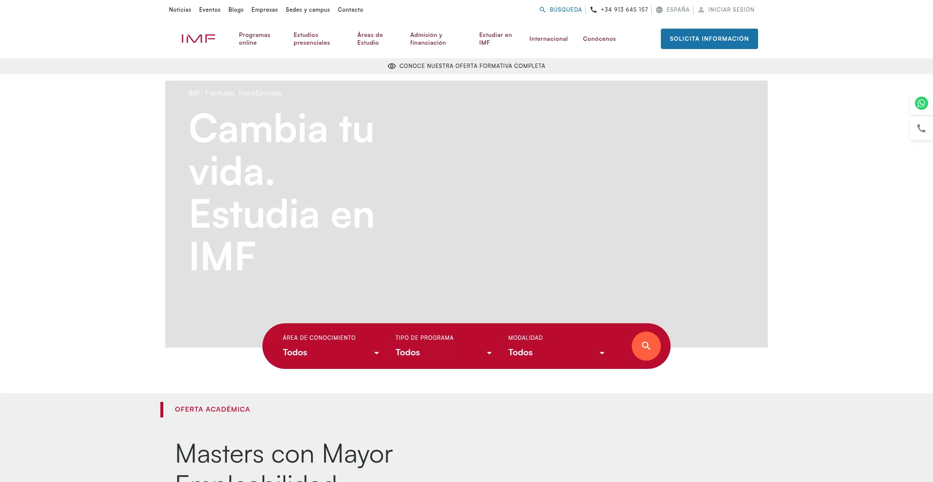 IMF, líderes formación online, a distancia y en MBA. Masters Oficiales y Profesionales con Bolsa de Empleo. 25 años y 150.000 estudiantes ¡Becas hasta 30%!