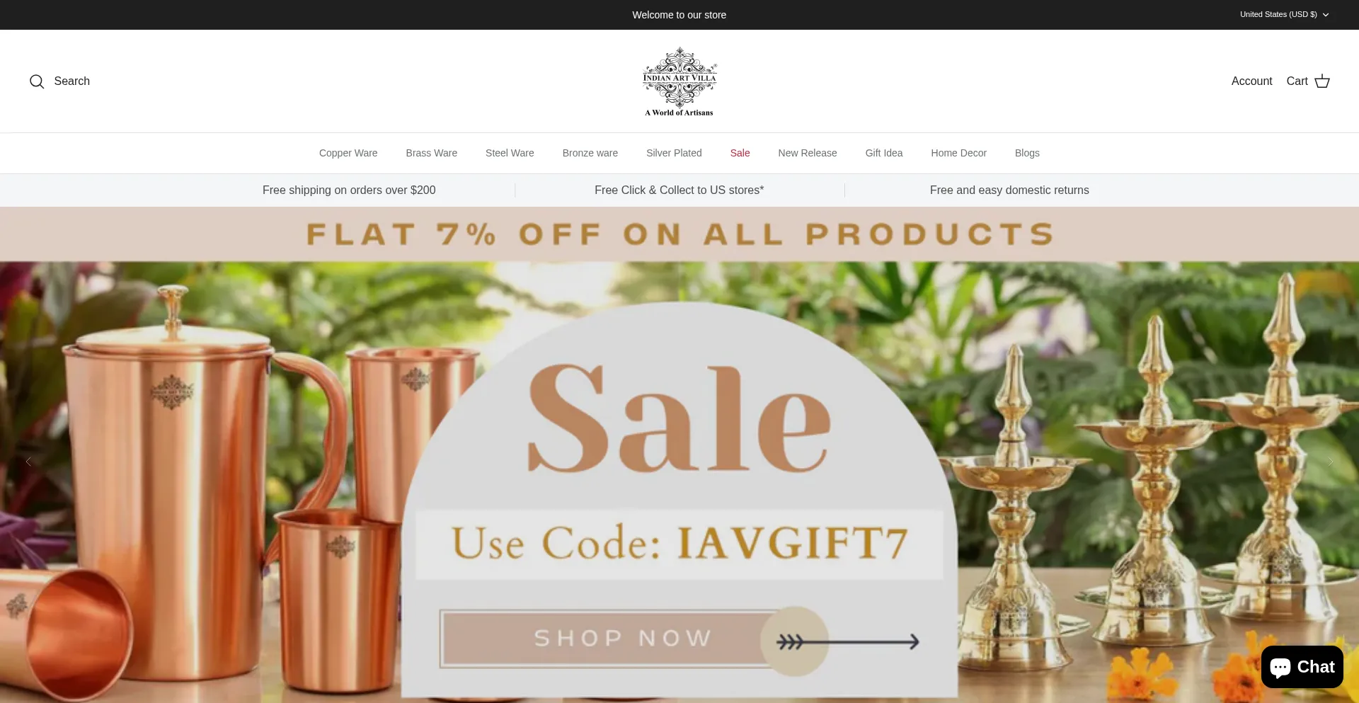 Buy Pure Copper Utensils Online | Copper Water Bottle | IndianArtVilla