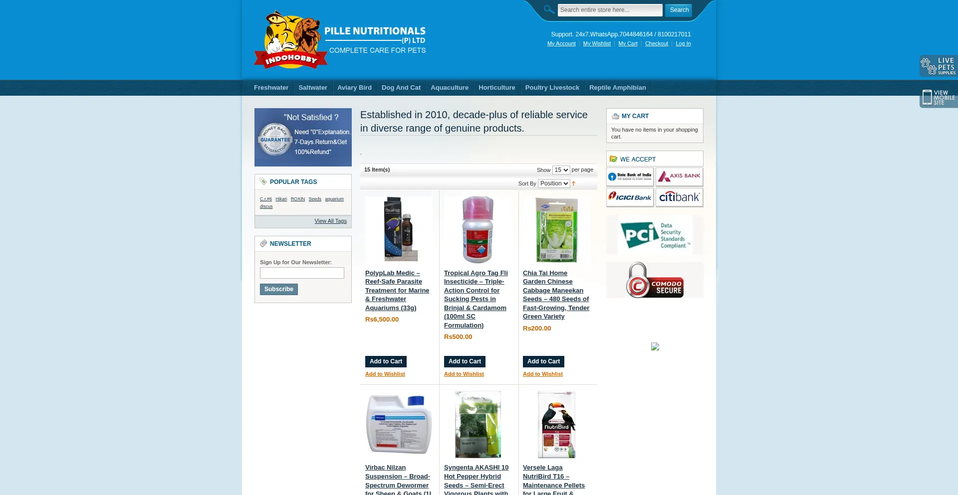 Buy aquarium supplies, pet food, bird medicines, aquatic plants, garden seeds, livestock supplements, and aquaculture probiotics online in India.