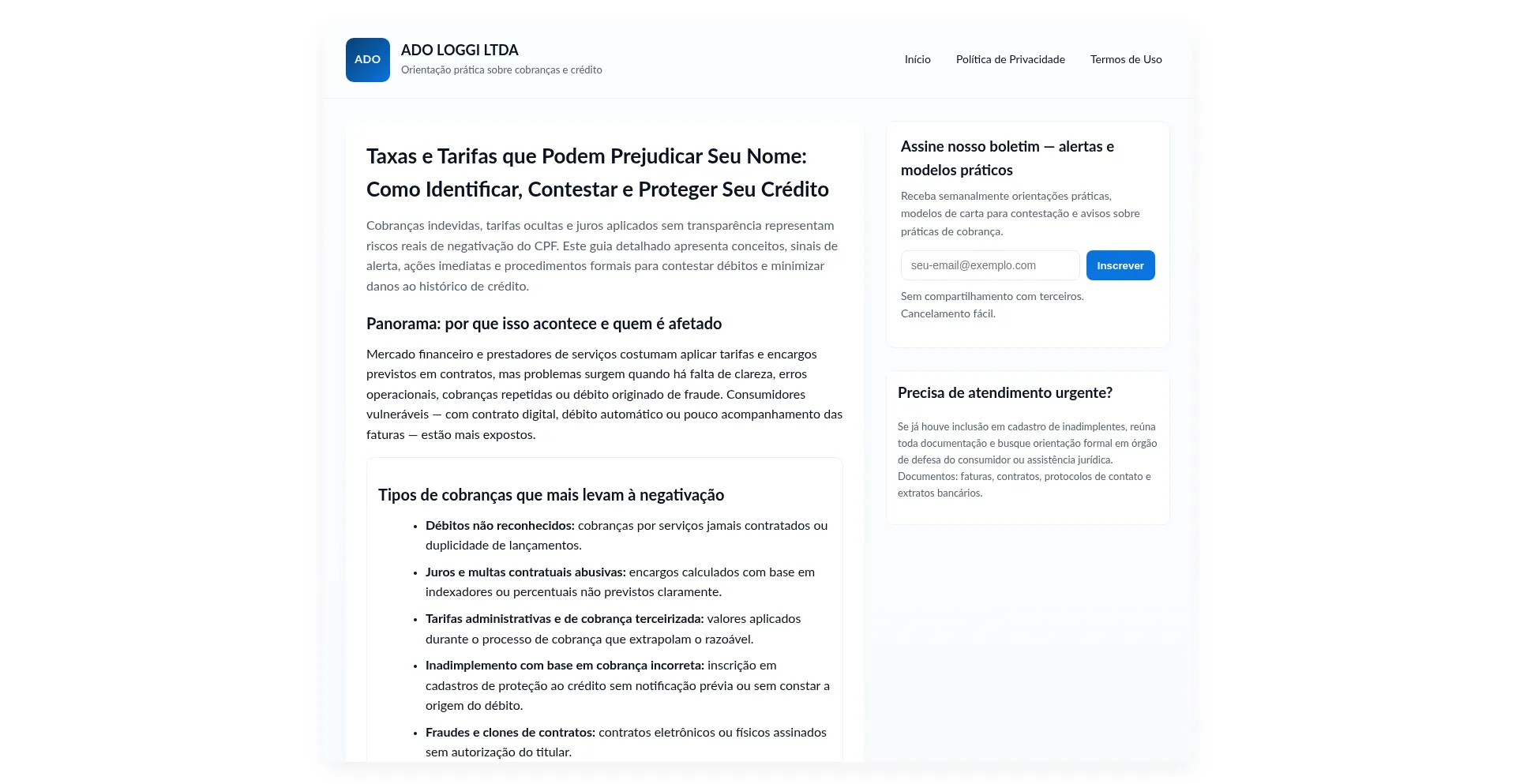 Alertas Sobre Taxas e Tarifas que Podem Prejudicar Seu Nome — ADO LOGGI LTDA