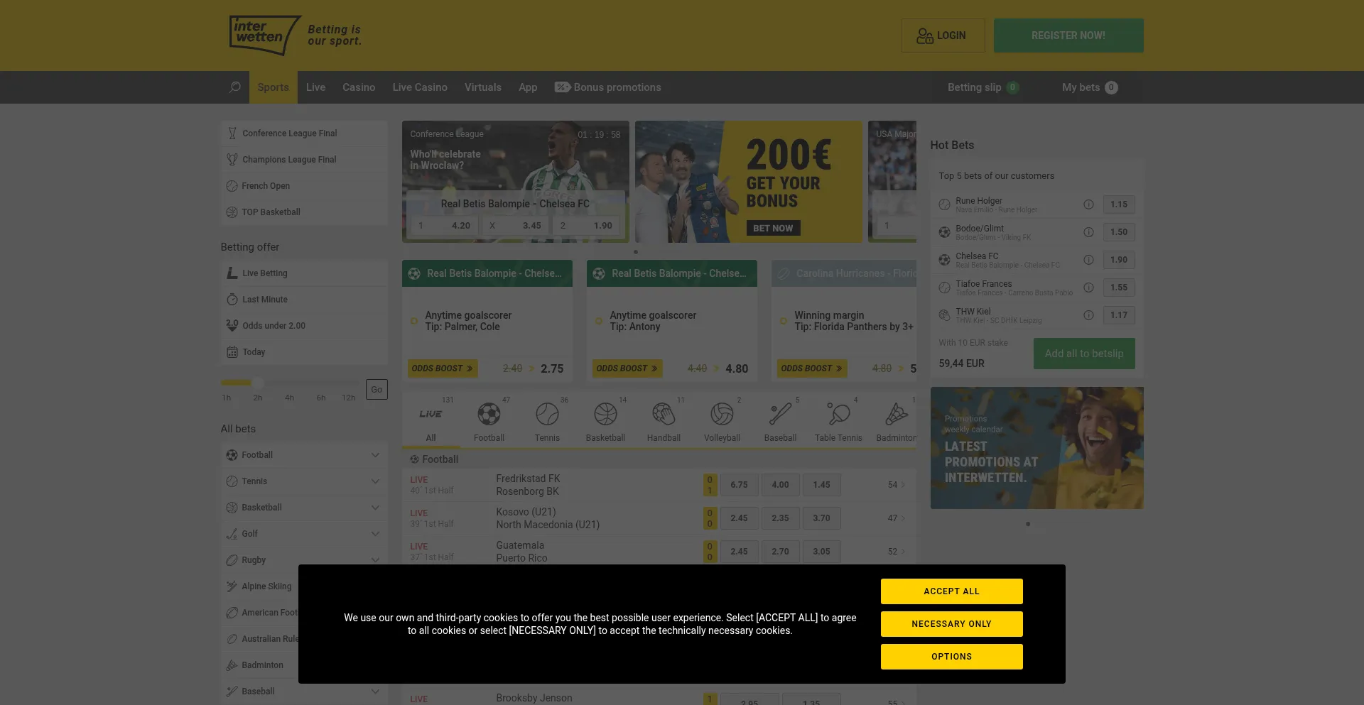 Bet on football, tennis, basketball & more with interwetten. Enjoy top sports betting odds, live betting, promotions & a €200 welcome bonus.