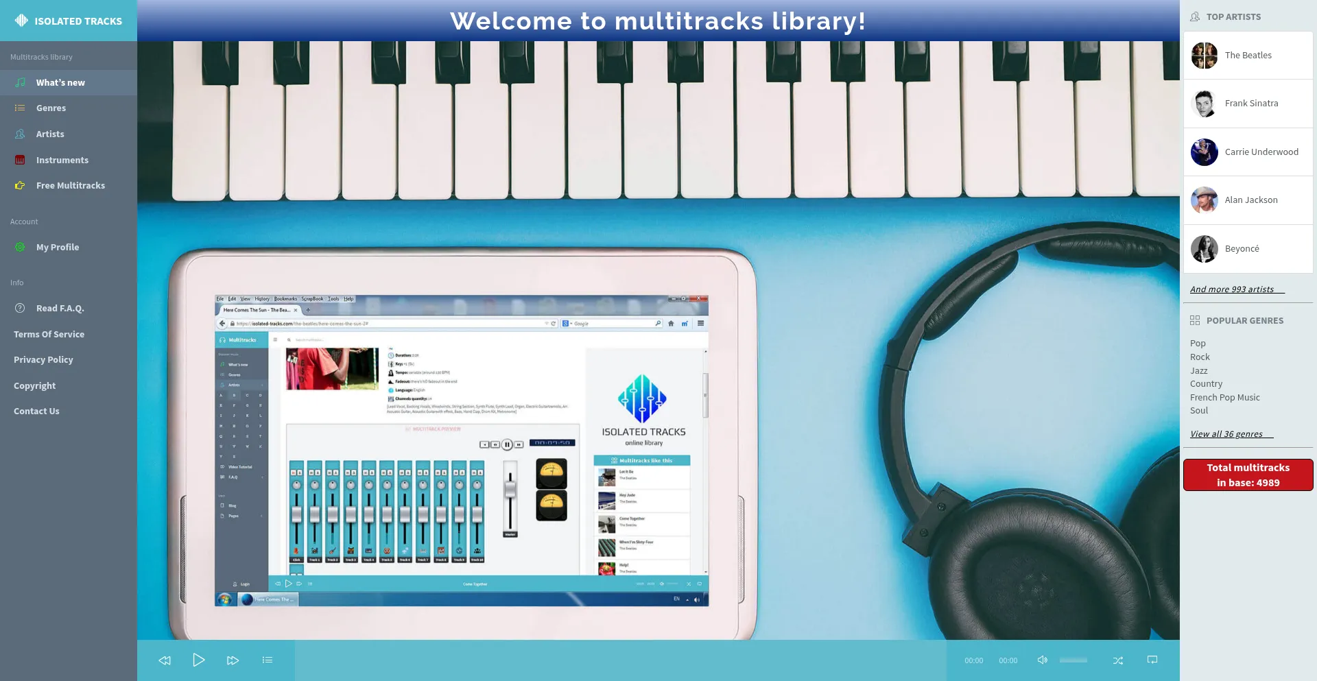 Library of high-quality stems (isolated tracks). Today we have 5474 multitrack recordings of famous songs in lots of genres! Use our multitracks to create your mixing masterpieces!