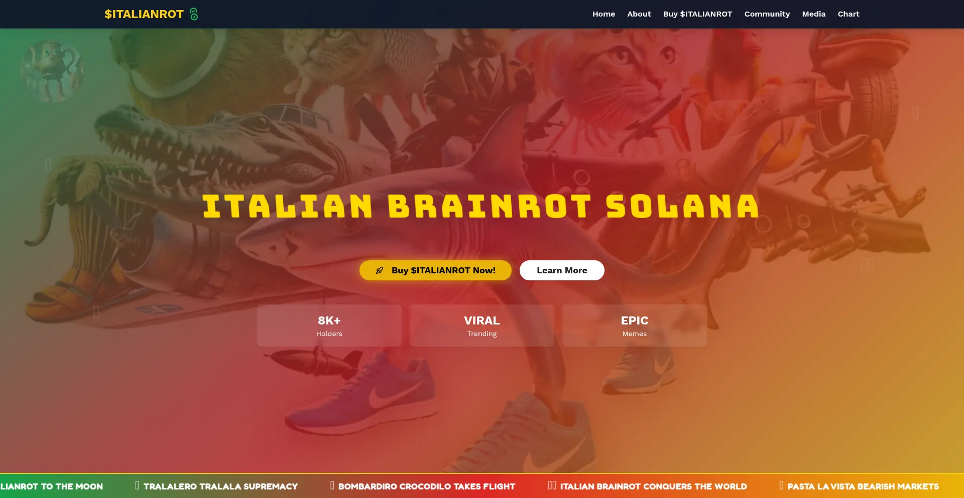 The #1 Italian Brainrot memecoin on Solana featuring Tralalero Tralala, Bombardiro Crocodilo, and Tung Tung Tung Sahur. Join the viral Italian Brainrot revolution - best Solana ...