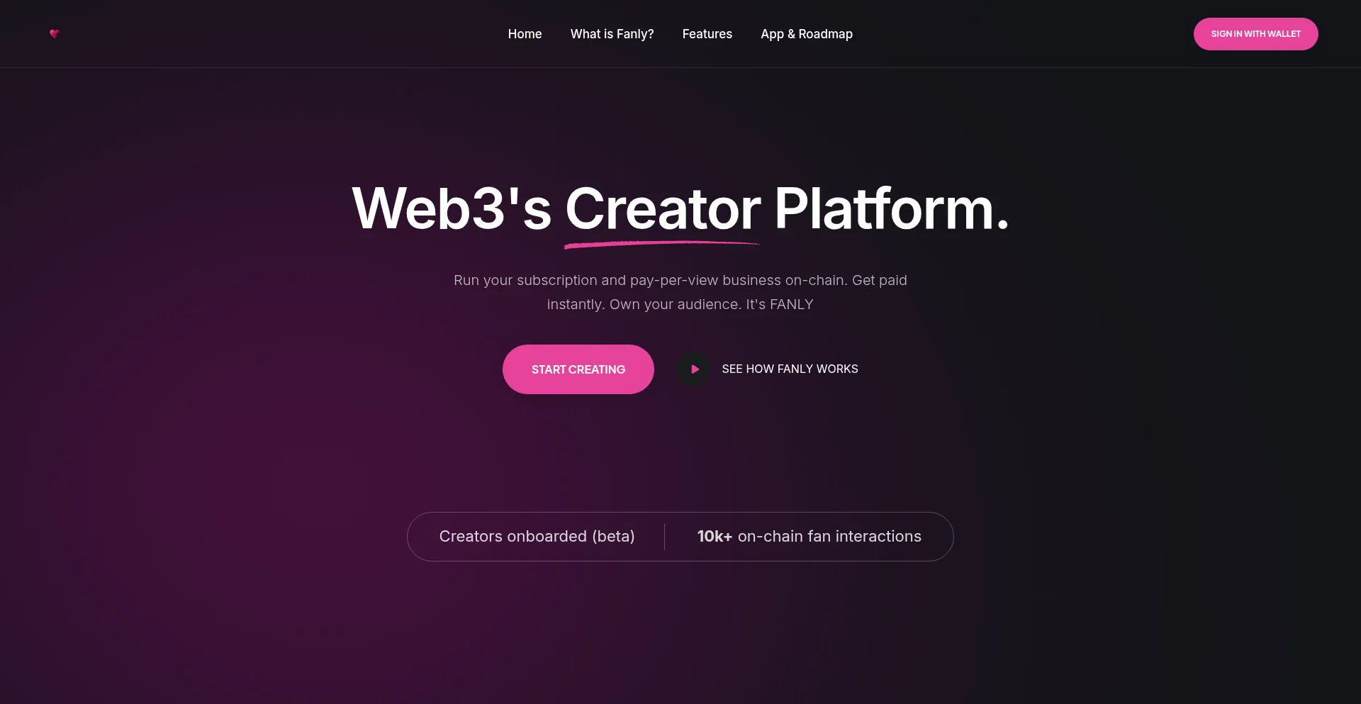Fanly is the Web3 creator platform for exclusive content. On-chain subscriptions, pay-per-view (PPV), and instant payouts. Your audience, your rules, your revenue.