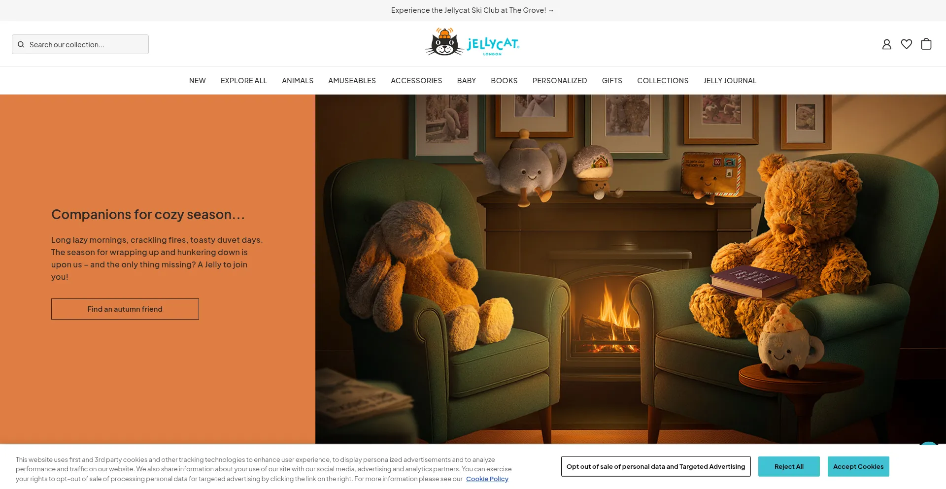 Die Website implementiert Cookie-Zustimmungsmechanismen in Compliance mit Datenschutzregulierungen wie DSGVO oder CCPA. Dies demonstriert, dass jellycat.com Datenschutzstandards einhält und Benutzern Kontrolle über persönliche Datenerfassungspraktiken bietet.