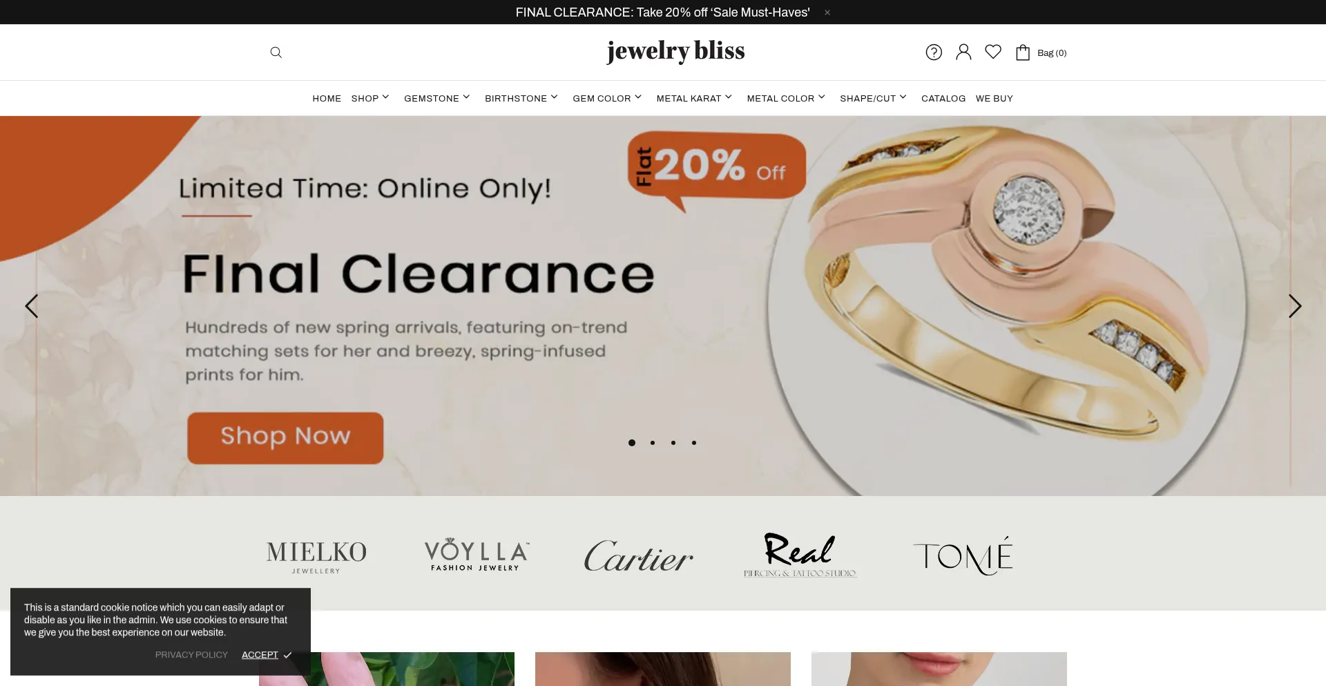 Die Website implementiert Cookie-Zustimmungsmechanismen in Compliance mit Datenschutzregulierungen wie DSGVO oder CCPA. Dies demonstriert, dass jewelrybliss.com Datenschutzstandards einhält und Benutzern Kontrolle über persönliche Datenerfassungspraktiken bietet.