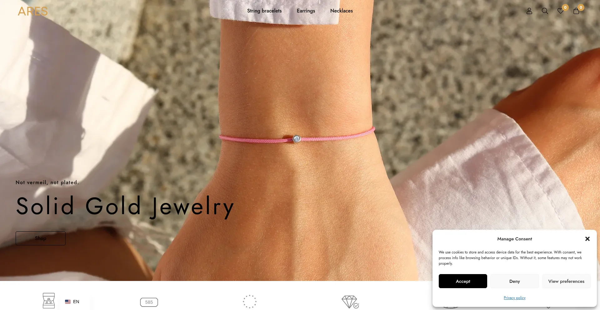 Die Website implementiert Cookie-Zustimmungsmechanismen in Compliance mit Datenschutzregulierungen wie DSGVO oder CCPA. Dies demonstriert, dass jewelsbyares.com Datenschutzstandards einhält und Benutzern Kontrolle über persönliche Datenerfassungspraktiken bietet.