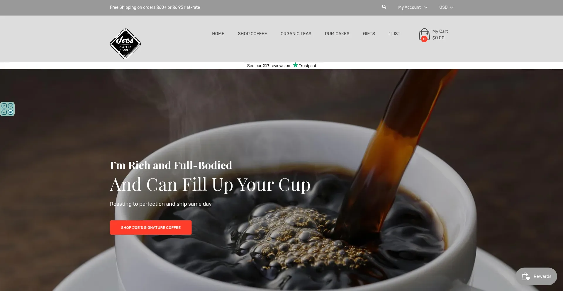 Unser Analyzer hat festgestellt, dass die Website joescoffeehouse.com Shopify CMS verwendet. Shopify ist eine beliebte E-Commerce-Plattform, die etwa 4,4 % der Websites weltweit betreibt.