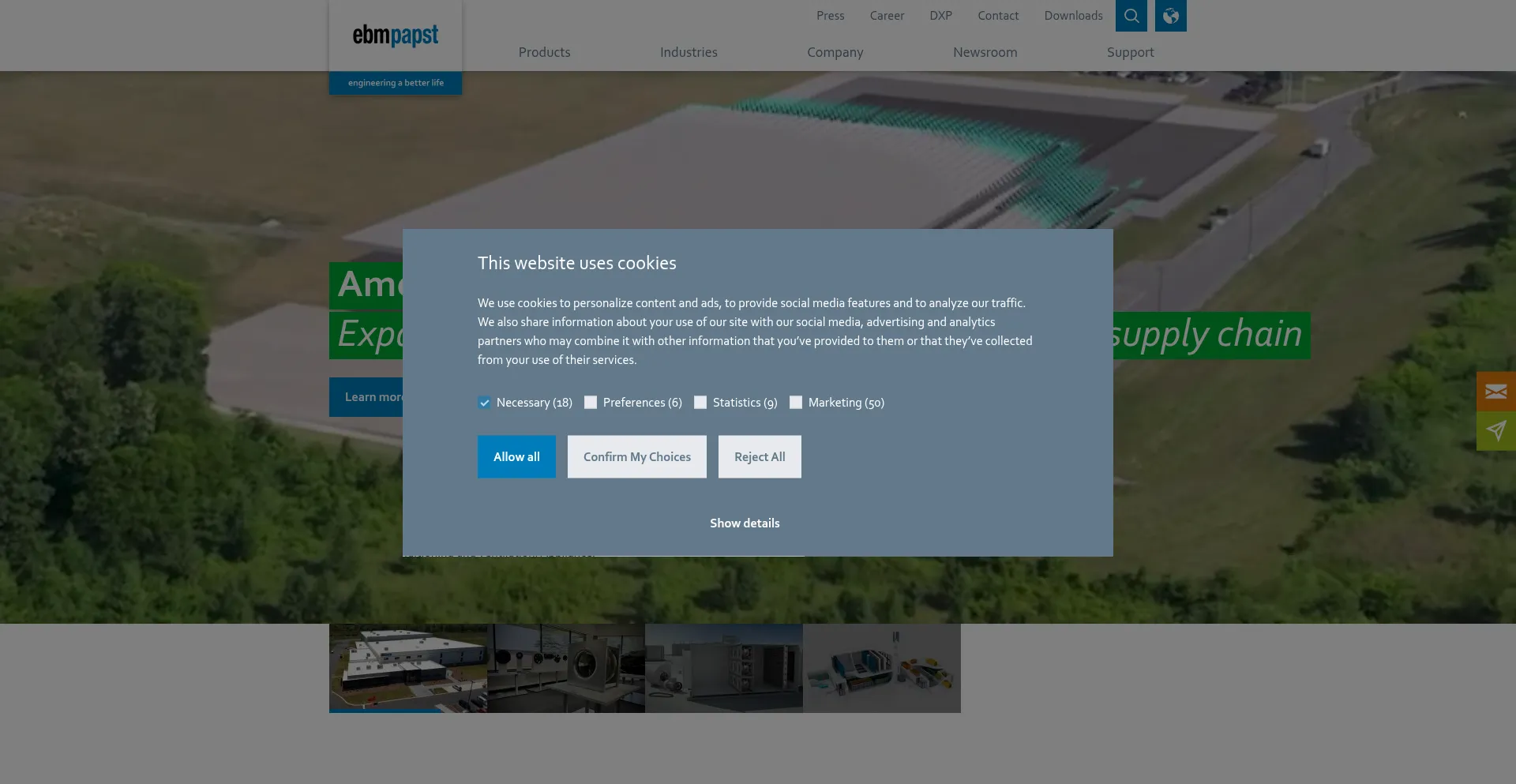 Die Website implementiert Cookie-Zustimmungsmechanismen in Compliance mit Datenschutzregulierungen wie DSGVO oder CCPA. Dies demonstriert, dass jp.ebmpapst.com Datenschutzstandards einhält und Benutzern Kontrolle über persönliche Datenerfassungspraktiken bietet.