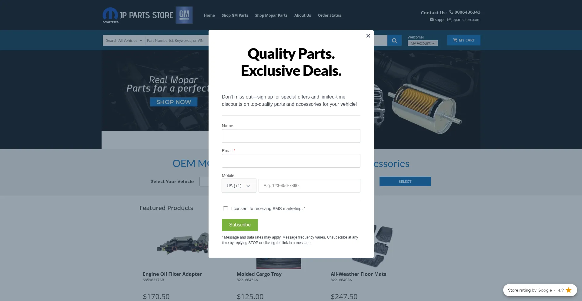 Die Website implementiert Datenerfassungsformulare, die persönliche Informationen einschließlich Namen, E-Mail-Adressen, Telefonnummern oder andere sensible Details anfordern. Benutzer sollten die Legitimität von jppartsstore.com verifizieren und Datenschutzrichtlinien überprüfen, bevor sie persönliche Daten übermitteln.