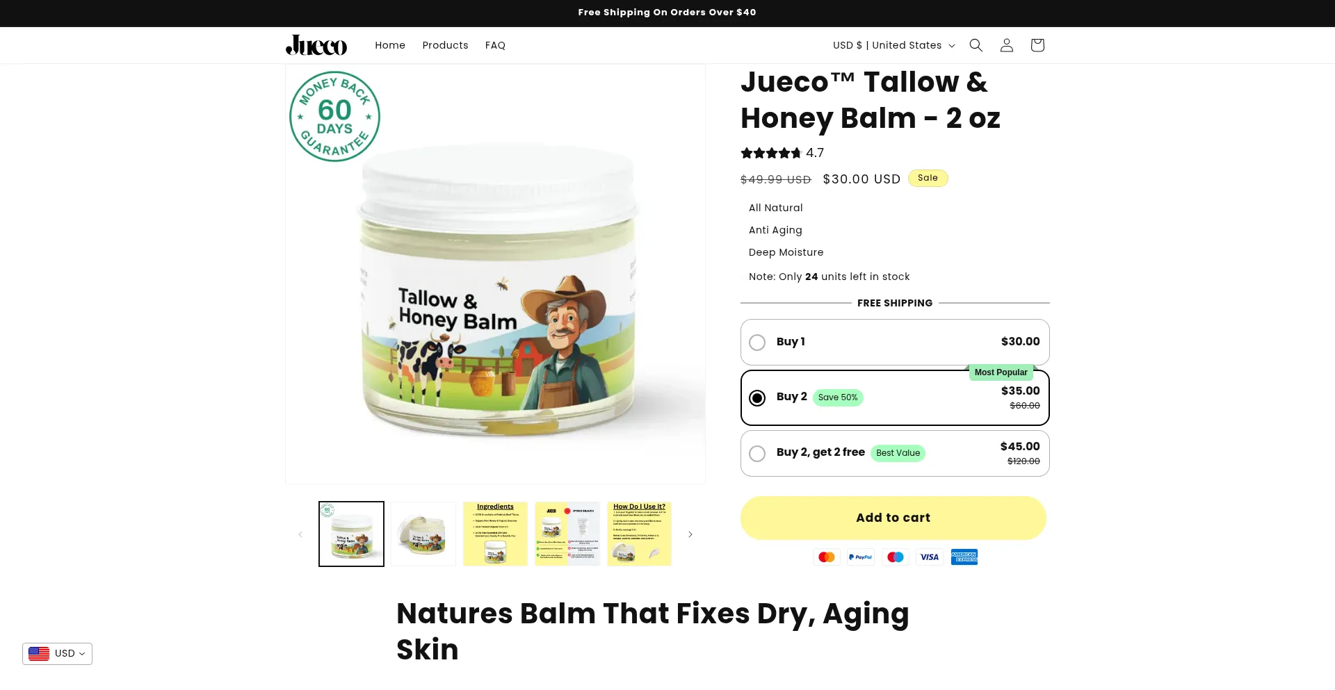Jueco Tallow and Honey Balm – Natural Anti-Aging Moisturizer