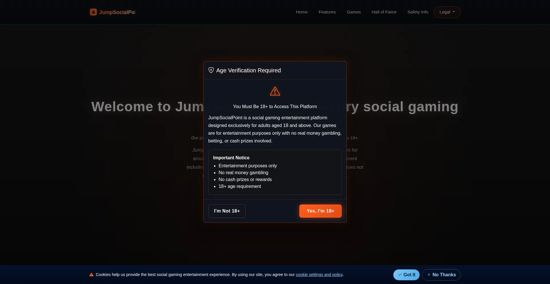 JumpSocialPoint is a free social gaming platform with slots and table games. No real money, no cash prizes. 18+ only. Play responsibly and join the community.