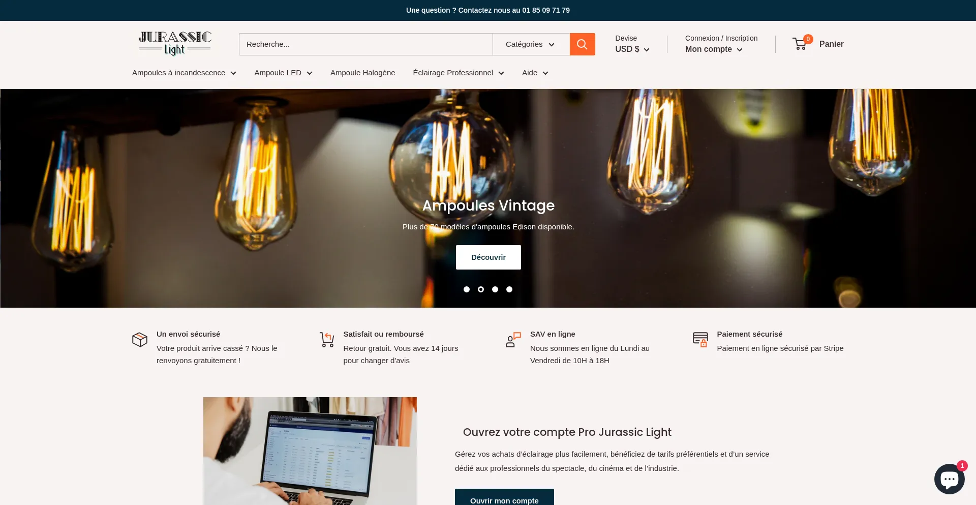 Spécialiste des ampoules à incandescence, halogènes, Edison vintage et modèles rares pour particuliers et professionnels. Livraison rapide en France. Jurassic Light.